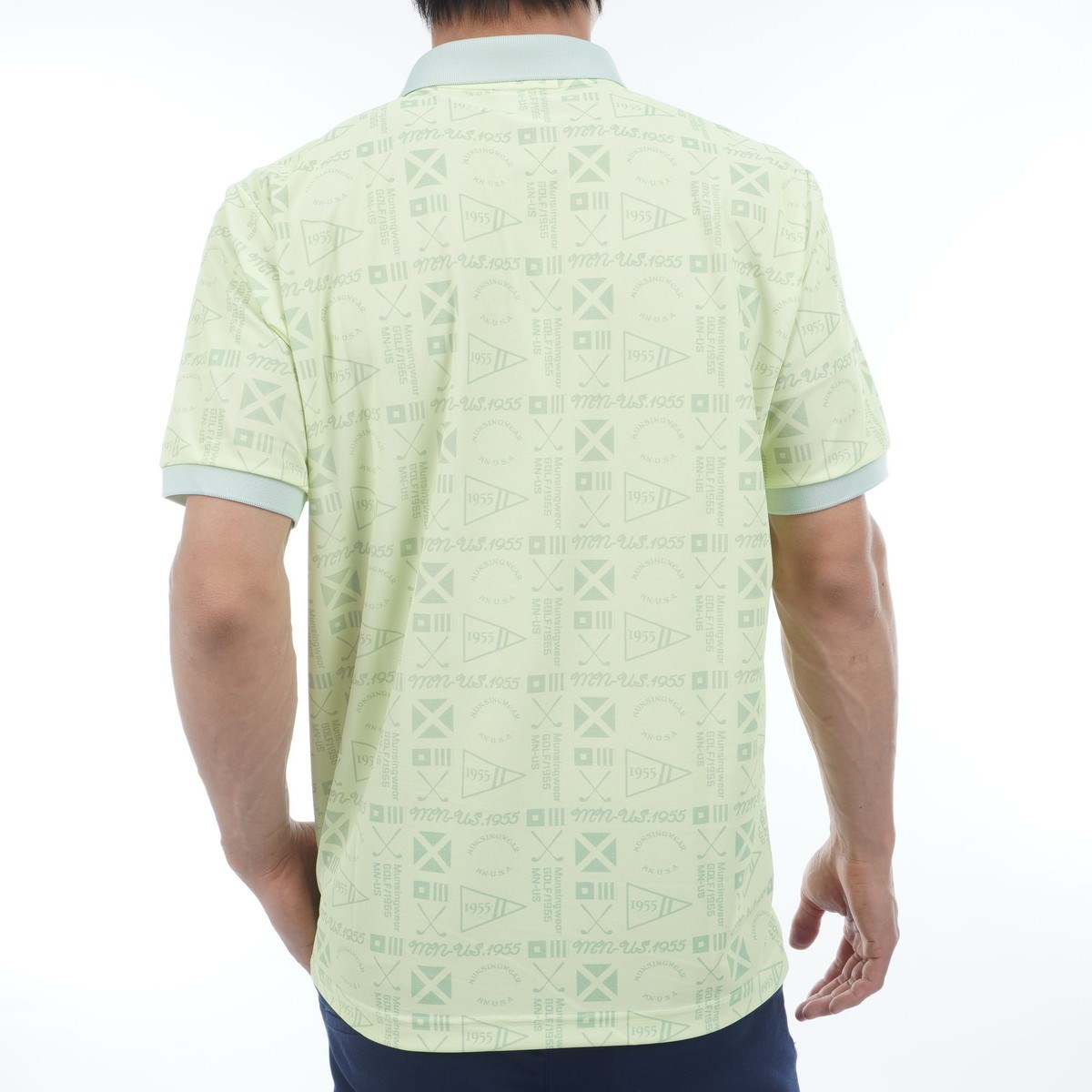 マンシングウェア Munsingwear SEASON サンスクリーン ストレッチ グラフィック総柄プリント半袖ポロシャツ 3L ライム 00