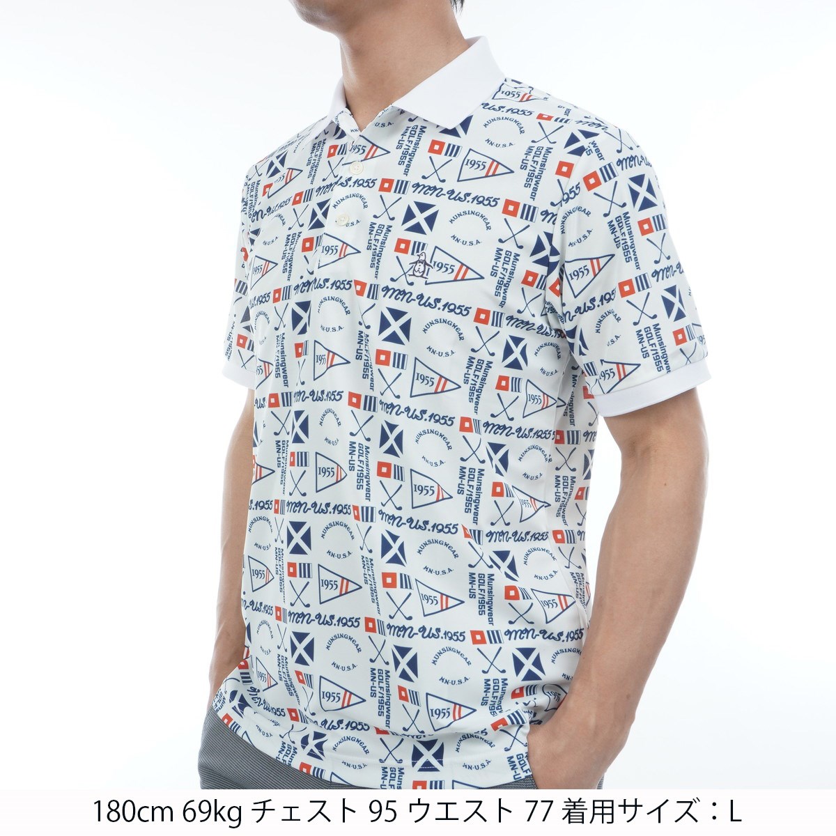 マンシングウェア Munsingwear SEASON サンスクリーン ストレッチ グラフィック総柄プリント半袖ポロシャツ L ホワイト 00