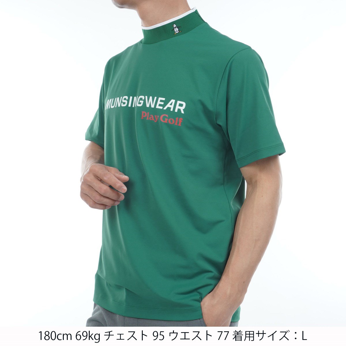 マンシングウェア Munsingwear SEASON サンスクリーンストレッチベア天竺 モックネック半袖シャツ L グリーン 00