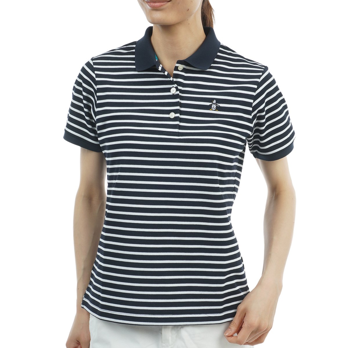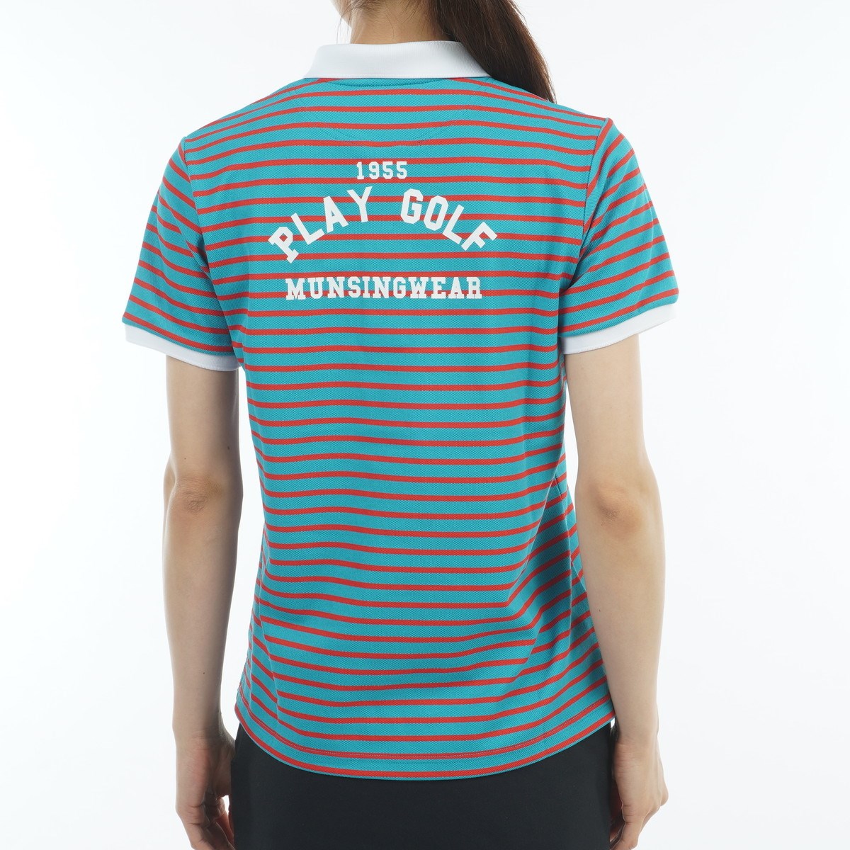 マンシングウェア Munsingwear SEASON COLLECTION SUNSCREEN ストレッチ 先染めボーダー鹿の子 半袖ポロシャツ L エメラルド 00 レディス