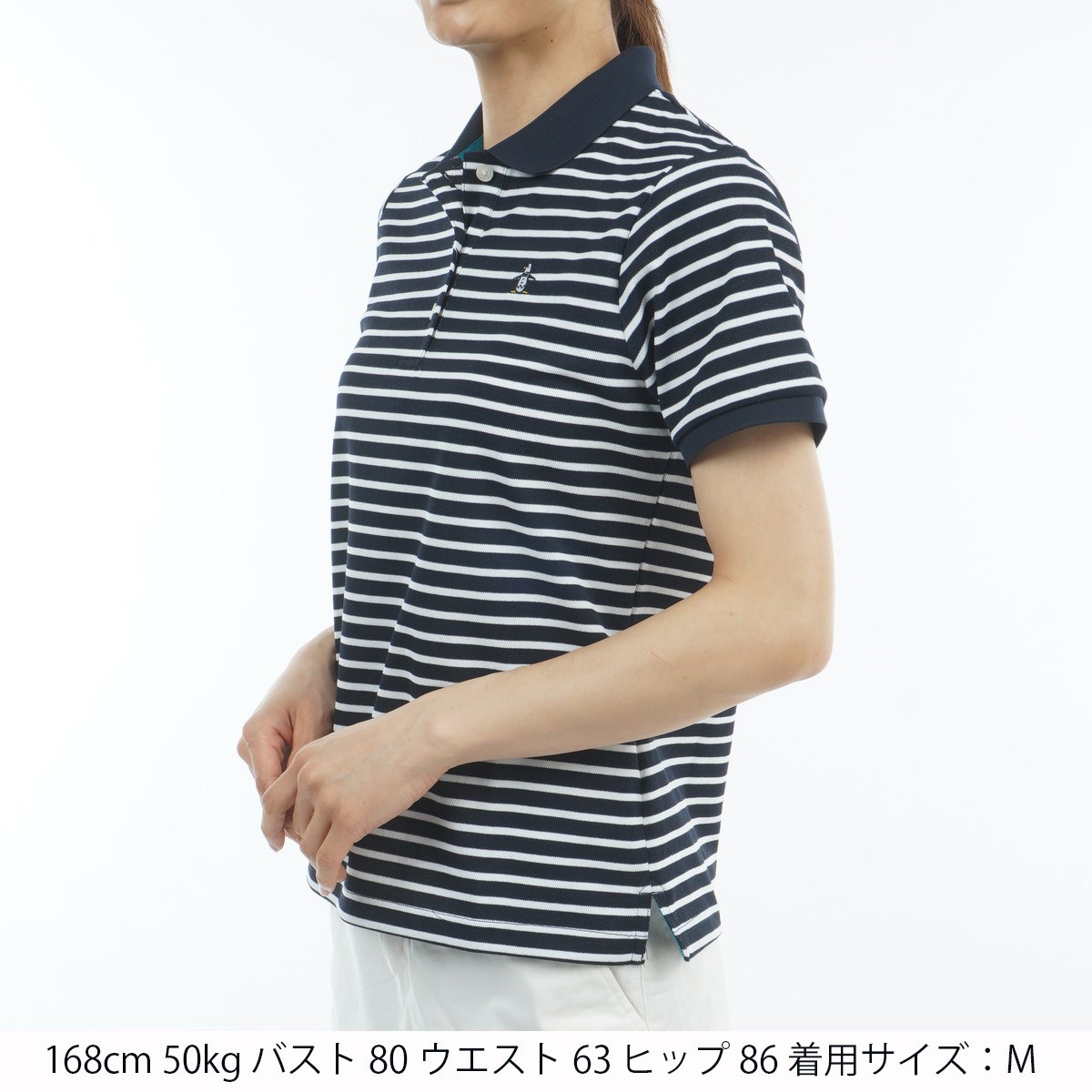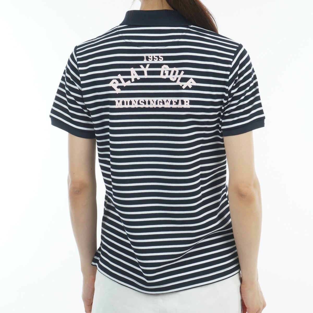マンシングウェア Munsingwear SEASON COLLECTION SUNSCREEN ストレッチ 先染めボーダー鹿の子 半袖ポロシャツ LL ネイビー 00 レディス