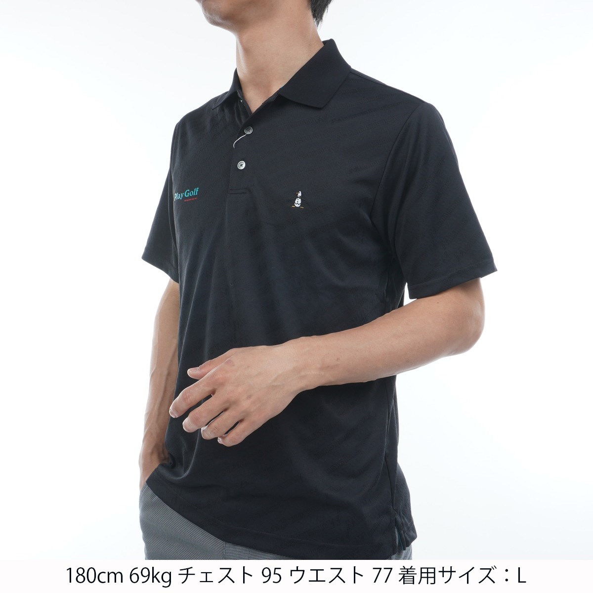 マンシングウェア Munsingwear SEASON ロゴジャカード ストレッチ半袖ポロシャツ M ブラック 00