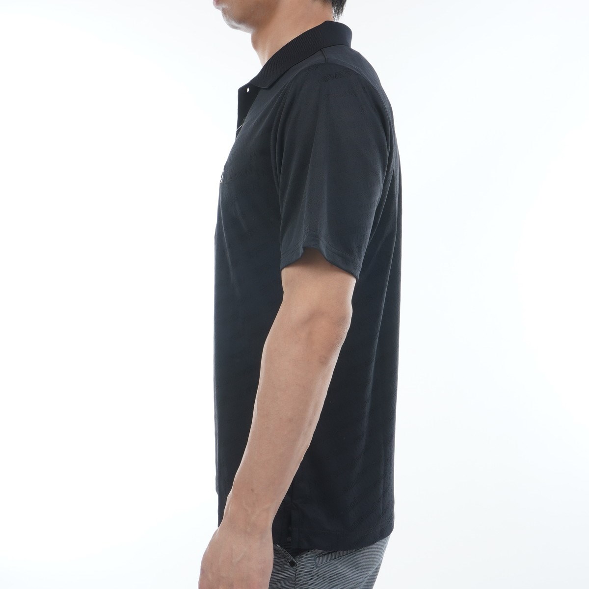 先染めのジャカード素材を採用した半袖ポロシャツ。
