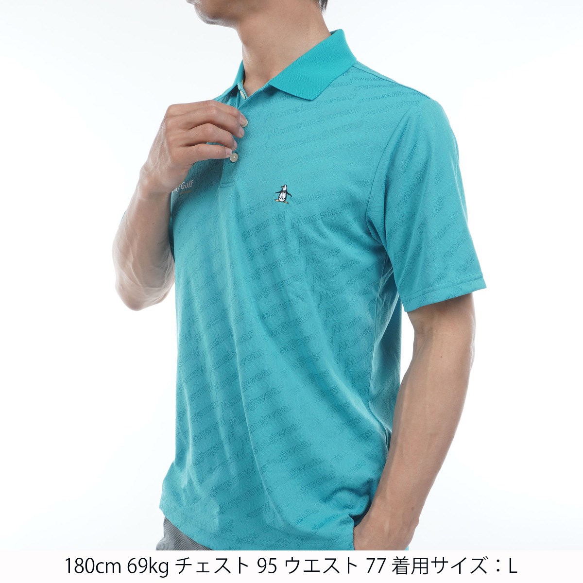 マンシングウェア Munsingwear SEASON ロゴジャカード ストレッチ半袖ポロシャツ 3L エメラルド 00