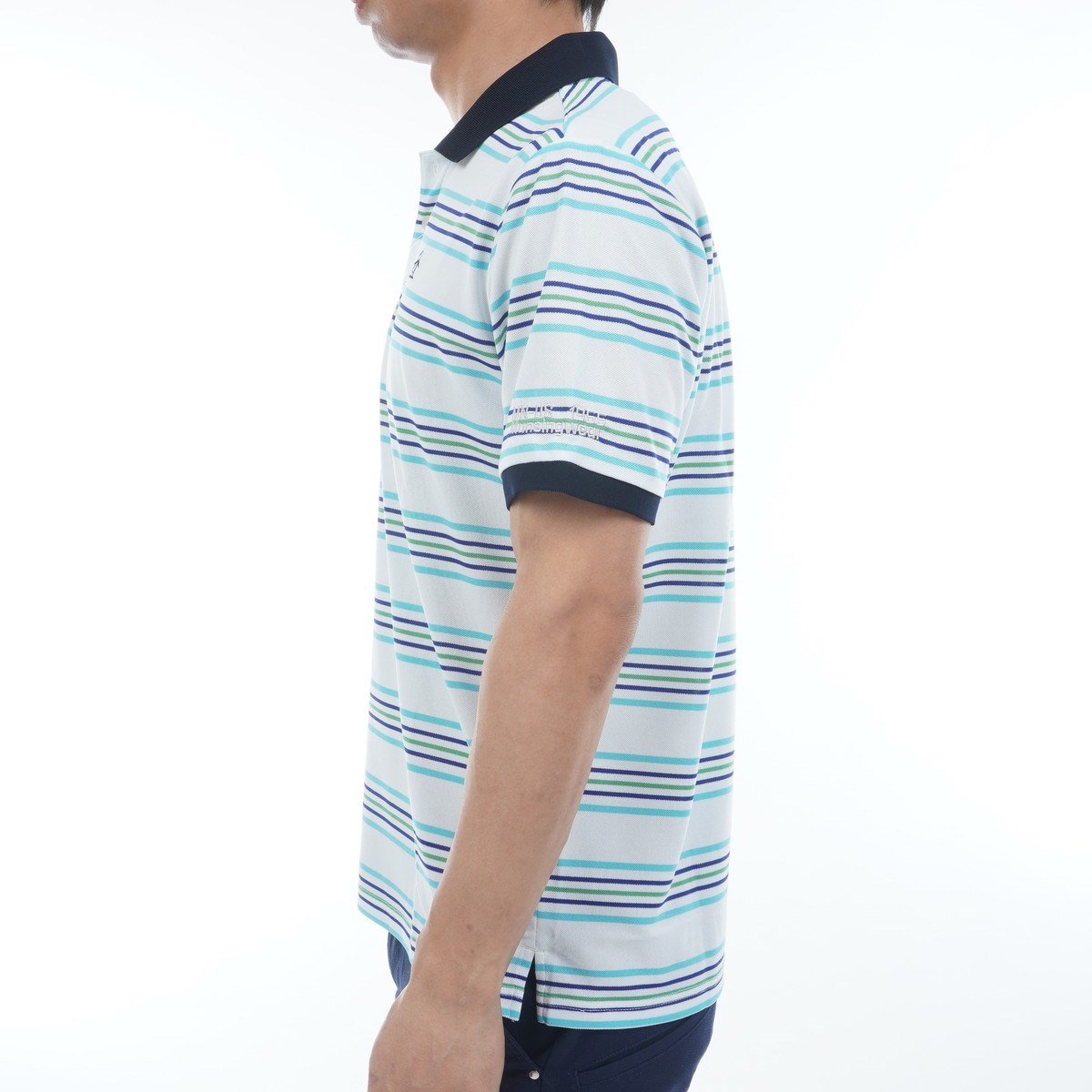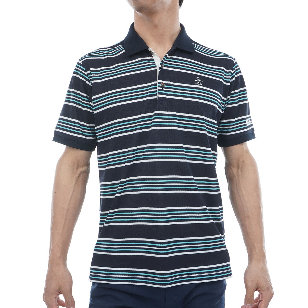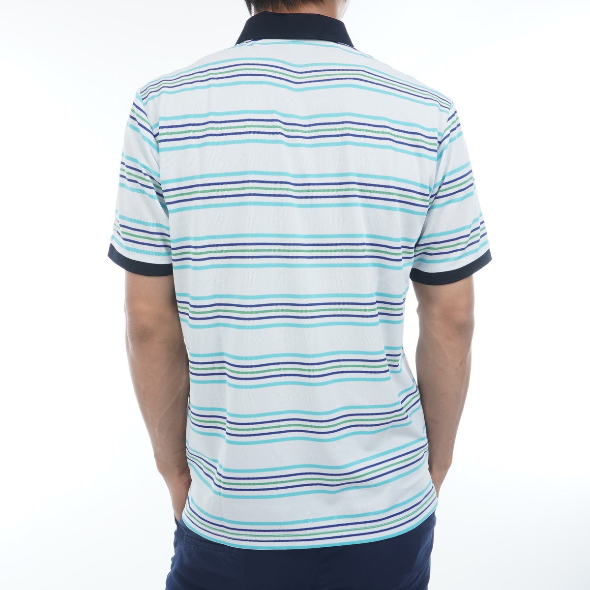 マンシングウェア Munsingwear SEASON ストレッチ マルチカラーボーダー鹿の子 半袖ポロシャツ M エメラルド 00