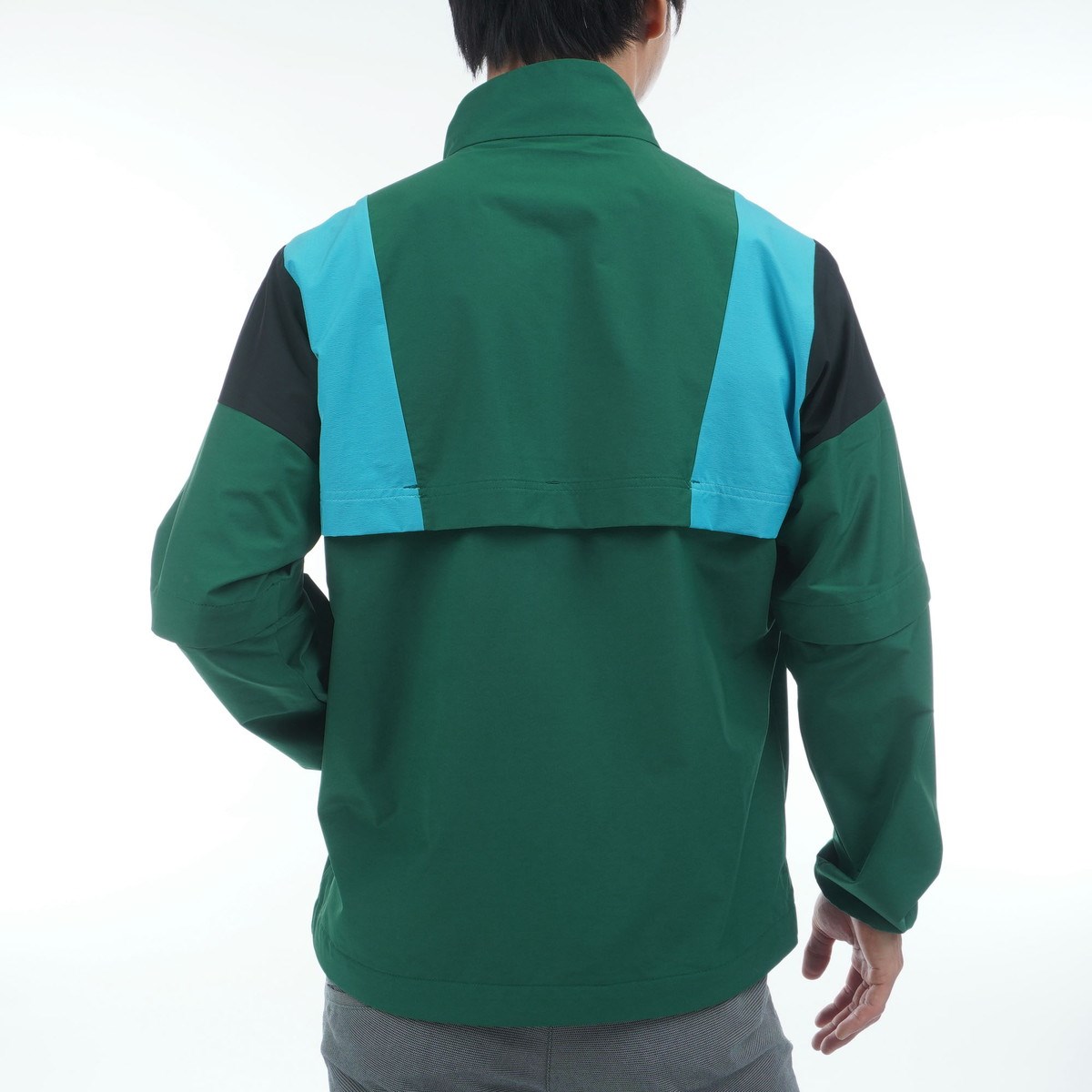大胆な配色切り替えのデザインで、袖脱着仕様で気候への変化にも対応。
