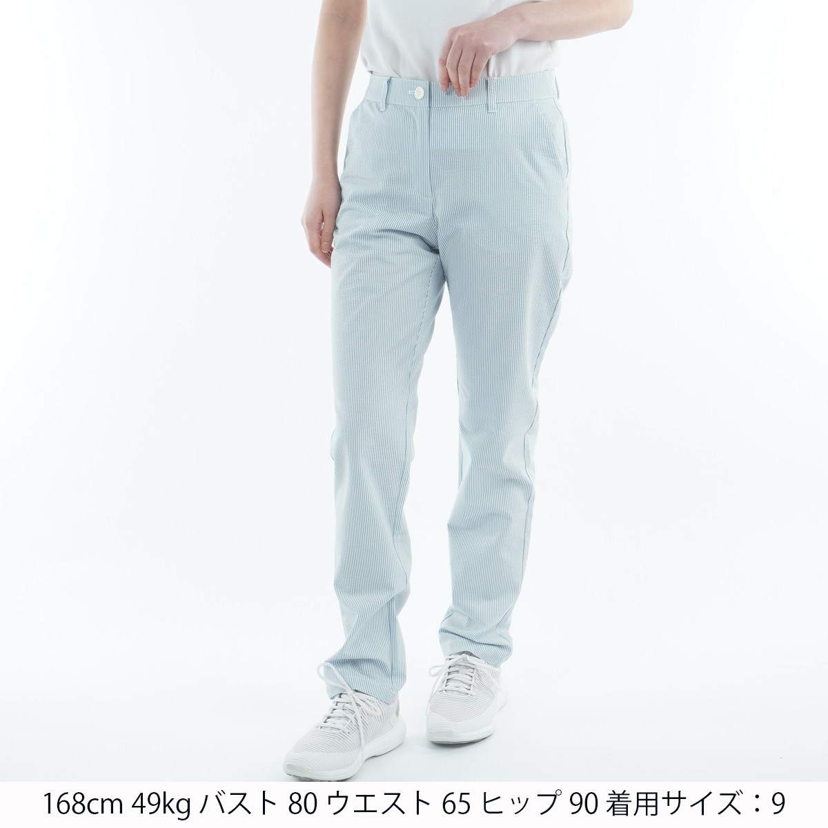 2WAYストレッチのサッカーストライプ素材を使用したロングパンツ。