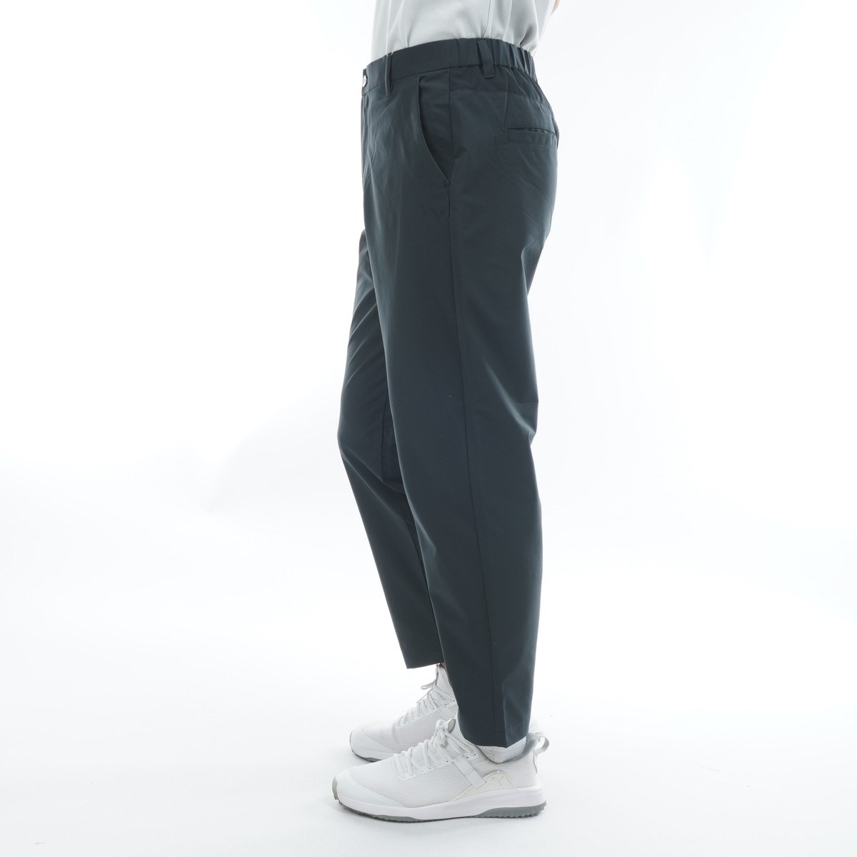 おなかまわりをゆったりめにすることで、窮屈さを軽減しつつ、ディテールにもこだわった設計でスタイリッシュな印象に仕上げています。
