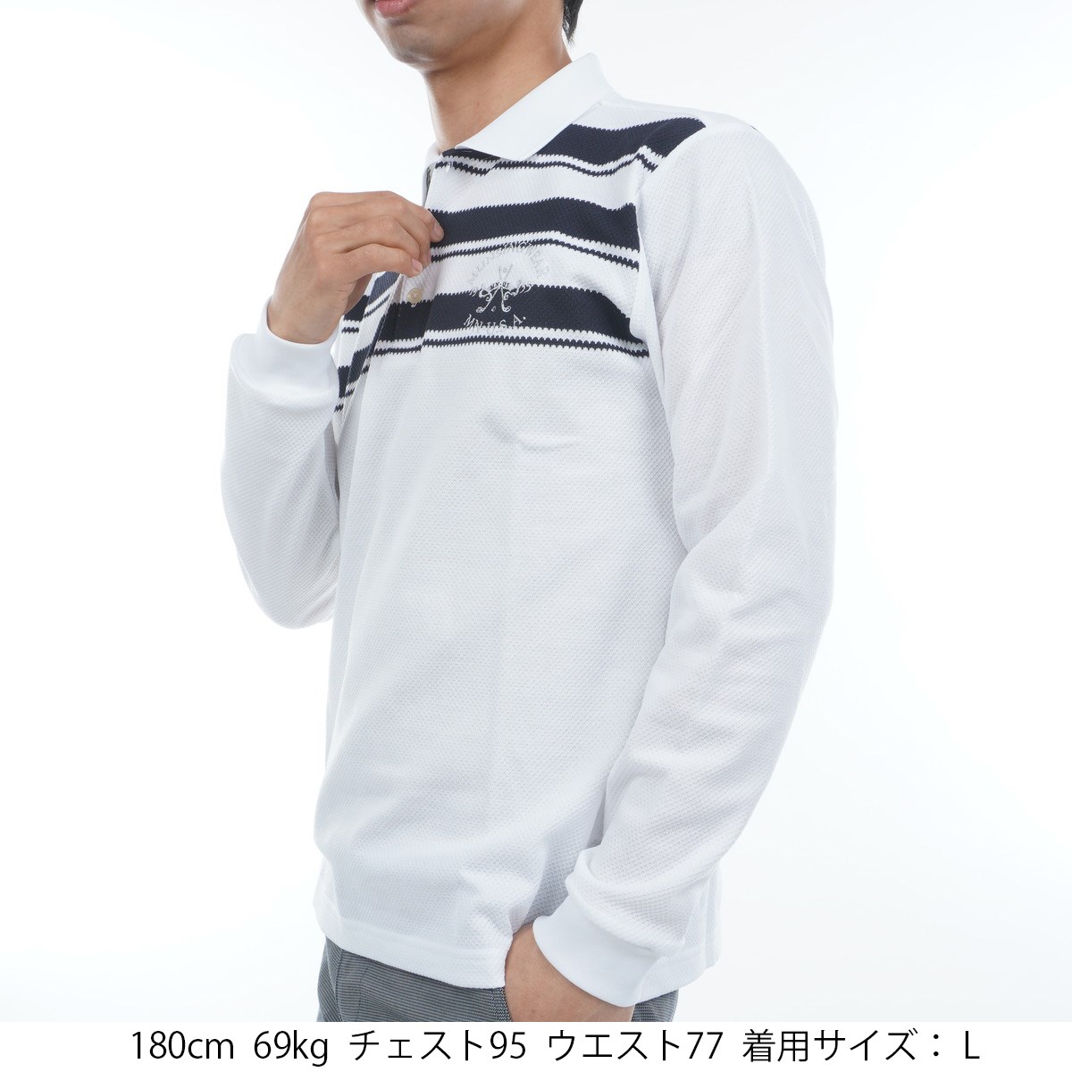 マンシングウェア Munsingwear SEASON パネルボーダー長袖ポロシャツ 3L ホワイト/ネイビー 01