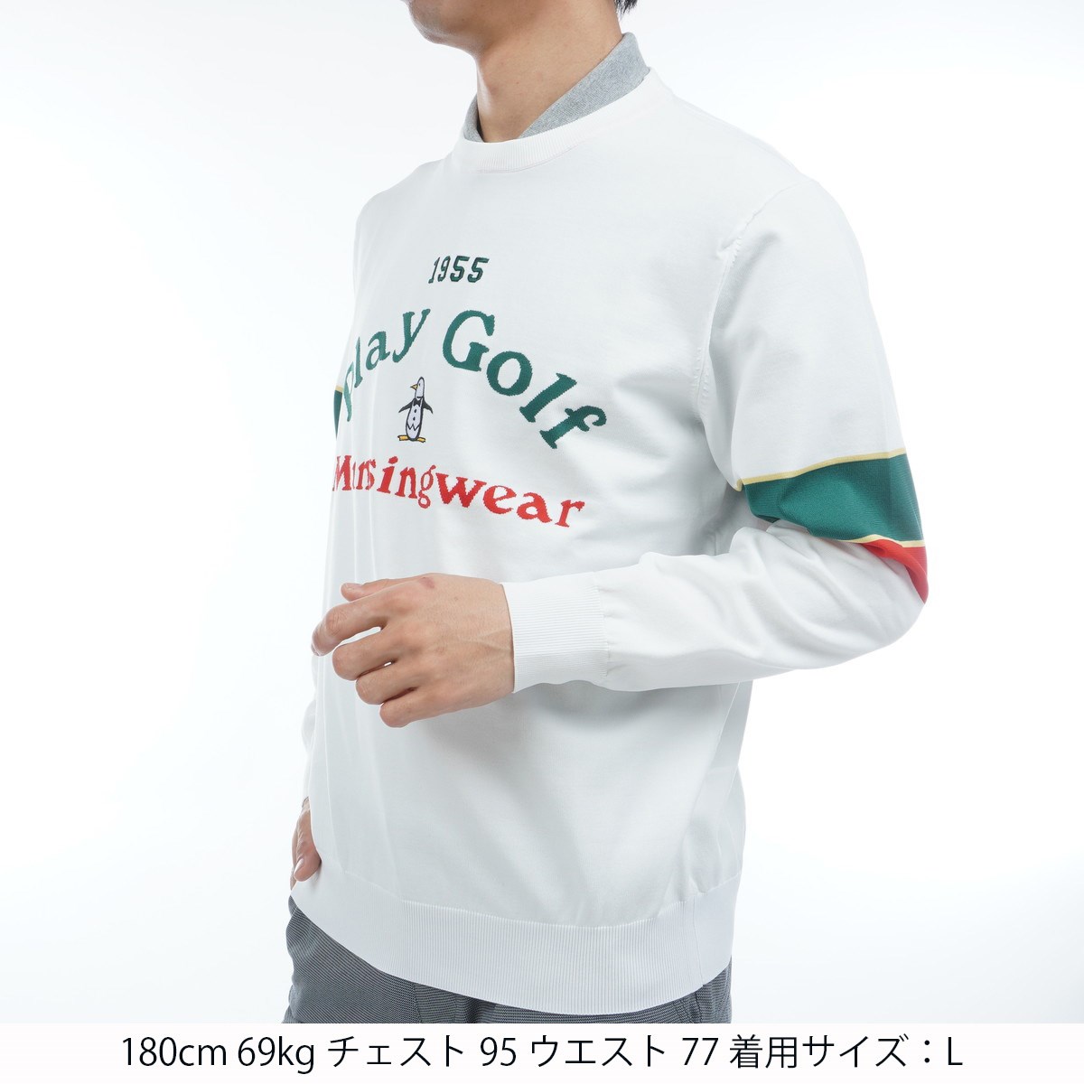 マンシングウェア Munsingwear SEASON ロゴ柄インターシャ クルーネックセーター M ホワイト 00