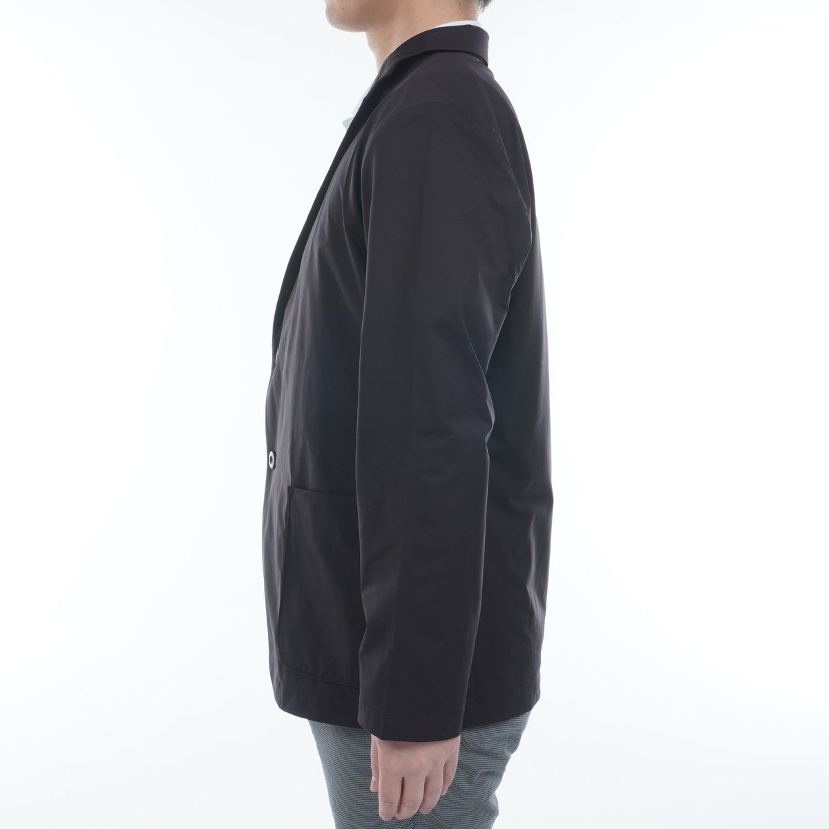 動きやすさと着心地の良さを追求した国産ハイゲージカットソー素材「46ゲージ・サイレント・マルチウェイ・エコ」を使用した2Bテーラードジャケット。