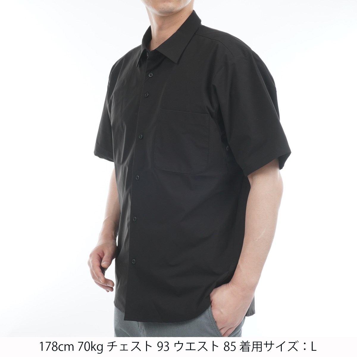 アンパスィ and per se & GOLF ストレッチ &タイプライター 半袖シャツ L ブラック
