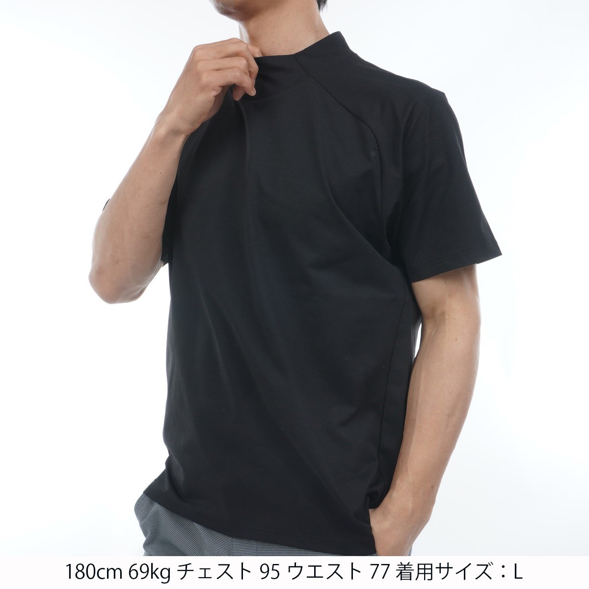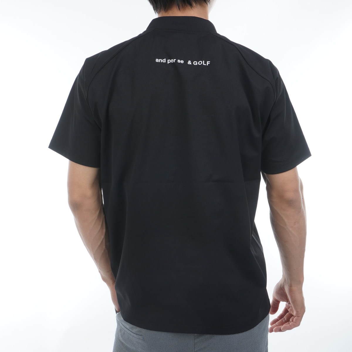 アンパスィ and per se & GOLF ストレッチ ドライエアリープレーン3D半袖モックネックシャツ L ブラック