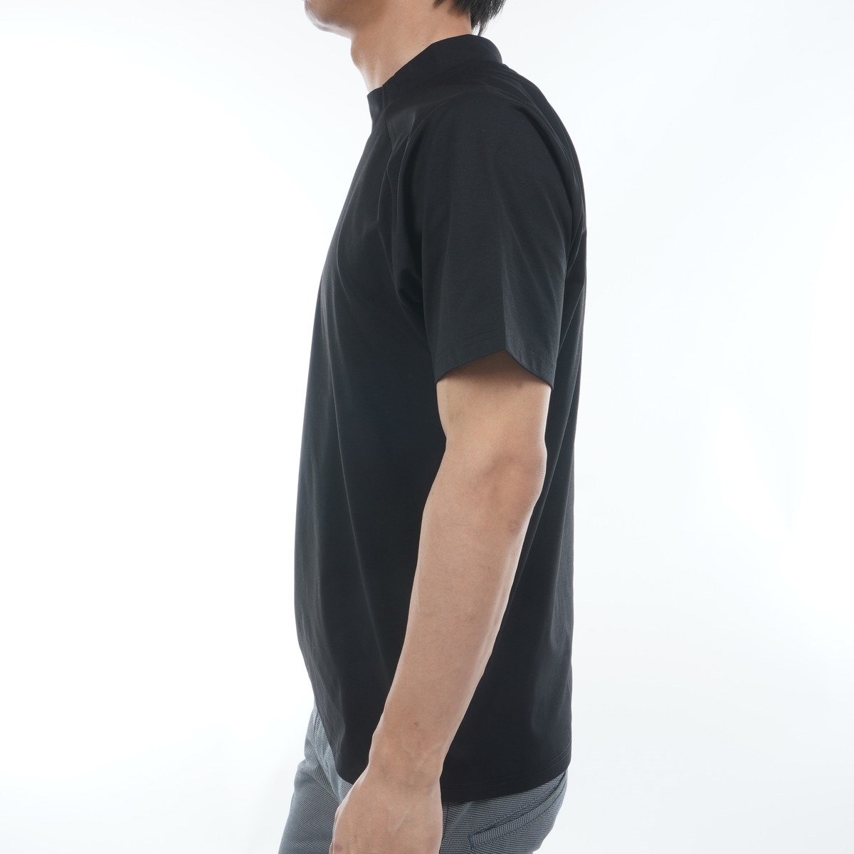 肌触りが良く、全方向へのストレッチ性を持つ天竺カットソー素材「ドライ・エアリー・プレーン・エコ」を使用した半袖モックネックTシャツ。