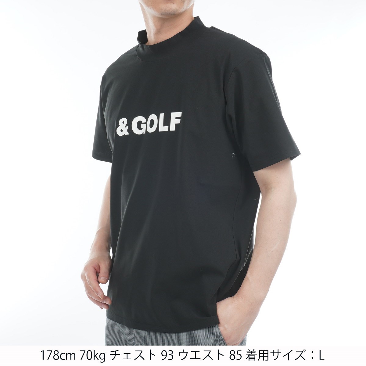 アンパスィ and per se & GOLF ストレッチ レイシャットピケ半袖モックネックシャツ M ブラック