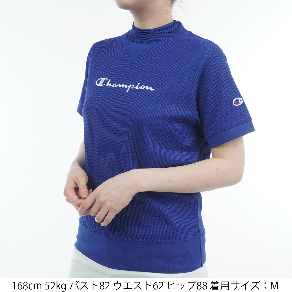 チャンピオンゴルフ Champion GOLF ライトドライワッフル 半袖モックネックシャツ M ブルー 340 レディス
