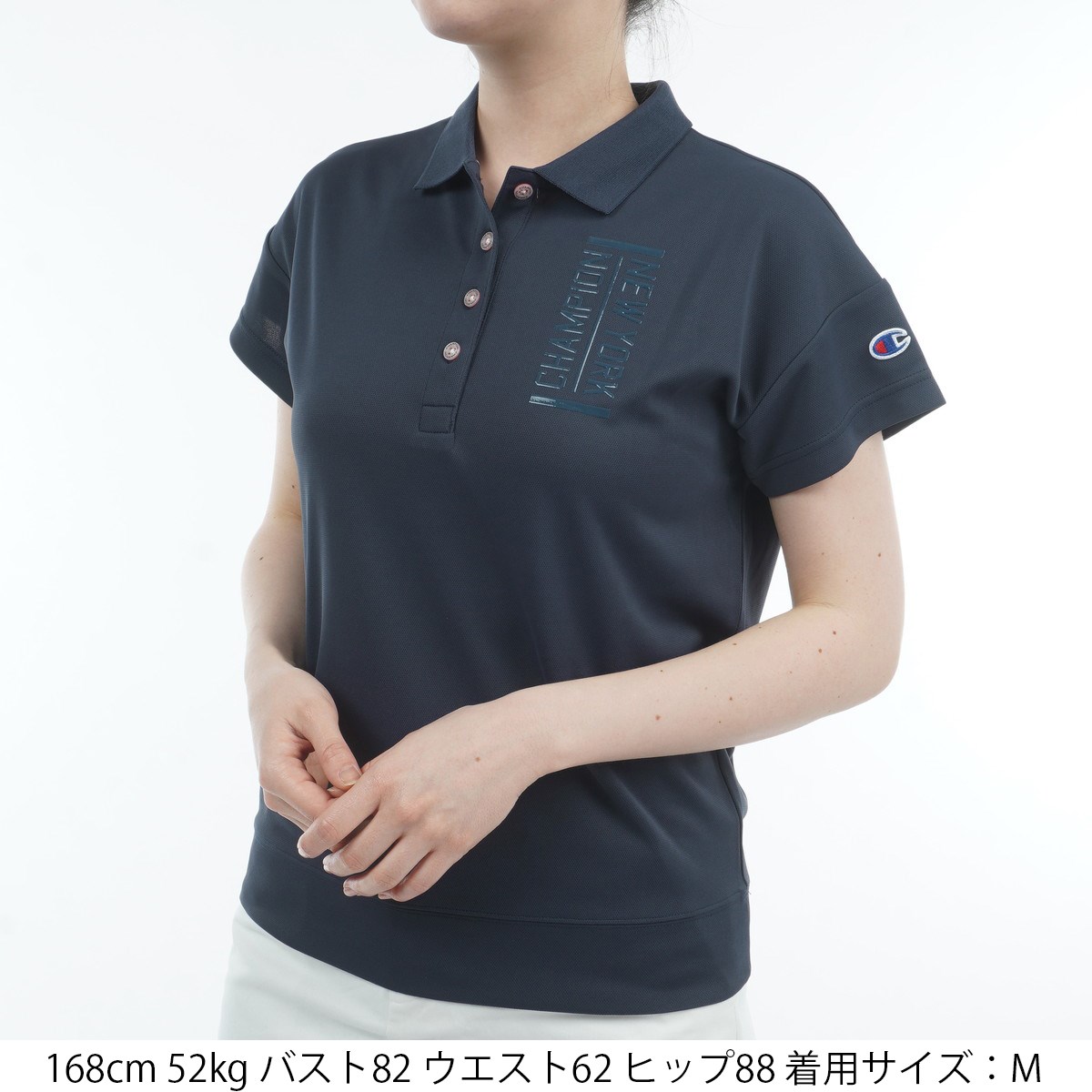 チャンピオンゴルフ Champion GOLF ライトビッグピケ ドロップショルダー 半袖ポロシャツ M ネイビー 370 レディス