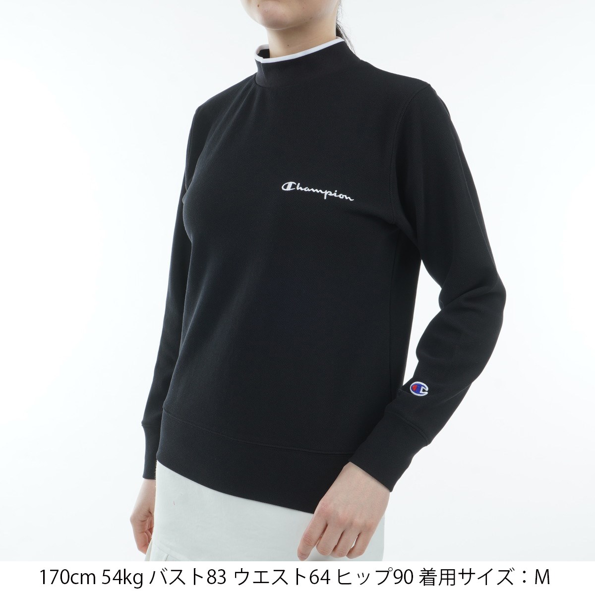 チャンピオンゴルフ Champion GOLF ライトビッグピケ モックネック長袖シャツ M ブラック 090 レディス