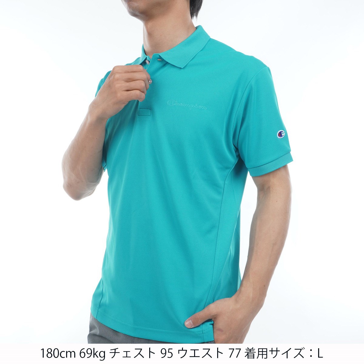 チャンピオンゴルフ Champion GOLF コンフォートベントジャージ 襟裏メッシュ 半袖ポロシャツ L ティールブルー 428