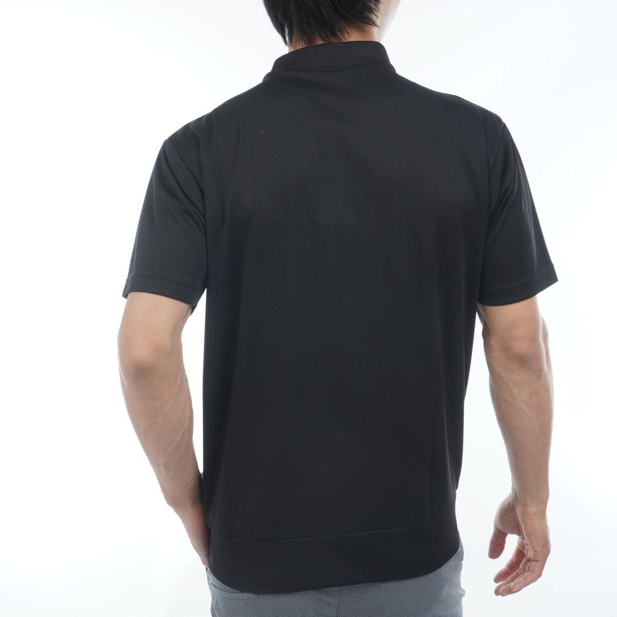 通気性に優れ、吸汗速乾機能、UVカット機能(UPF50+)、遮熱効果など、暑い季節に必要な要素を高い次元で実現した素材をボディと襟ともに使用した半袖モックネックシャツです。