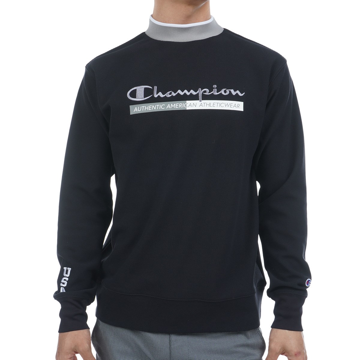 チャンピオンゴルフ Champion GOLF ライトビッグピケ モックネック長袖シャツ M ブラック 090