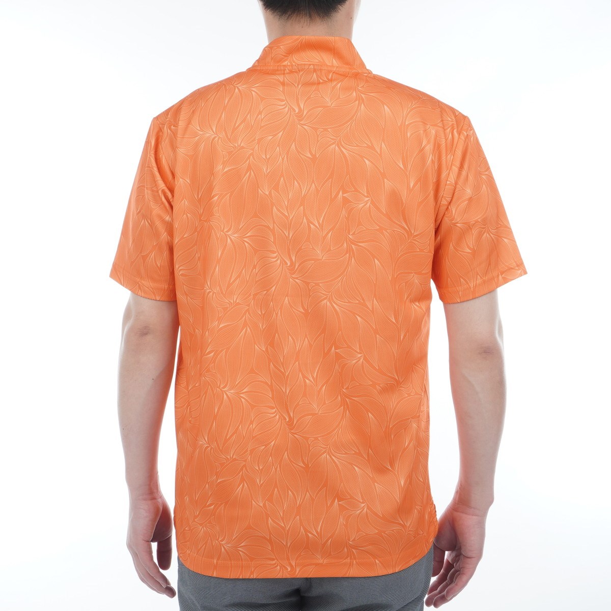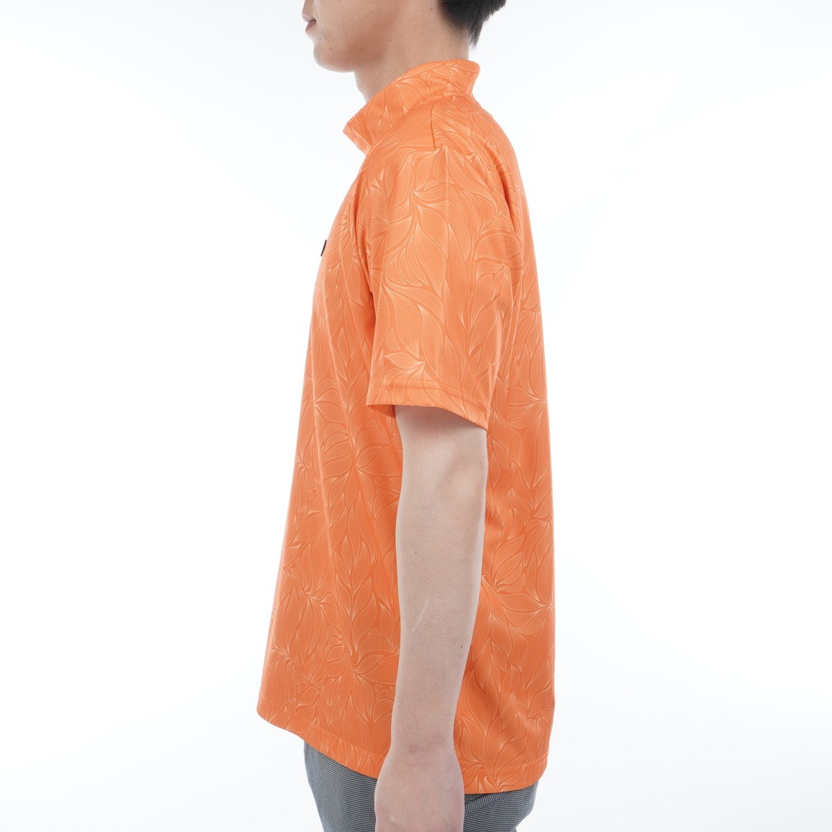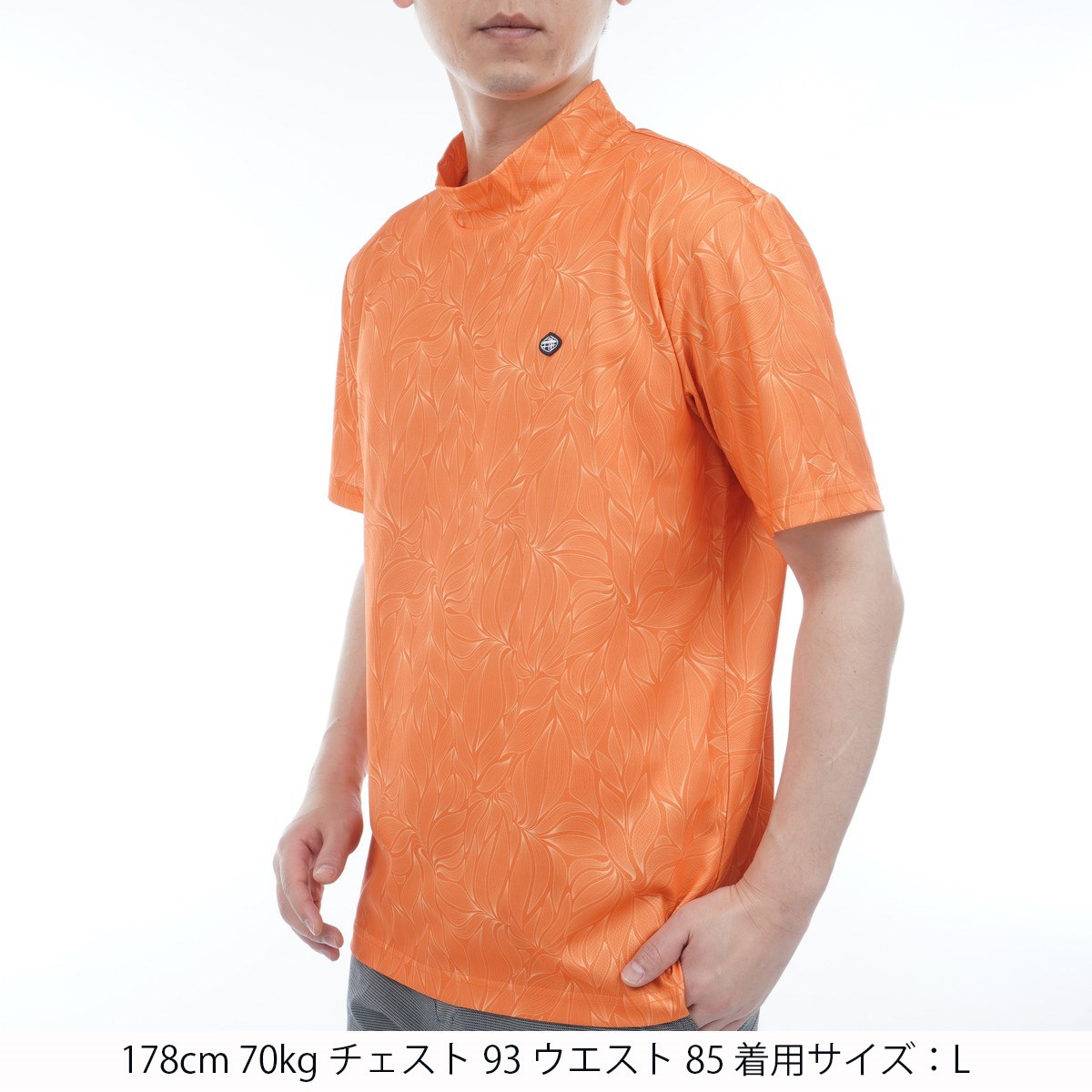 フィドラ FIDRA ストレッチ リーフプリントモック半袖シャツ M オレンジ