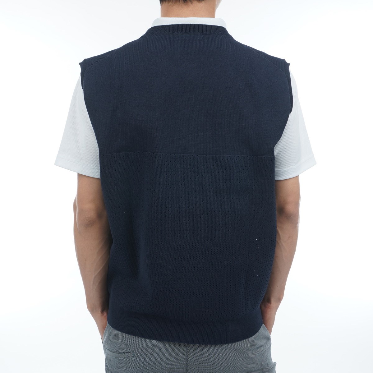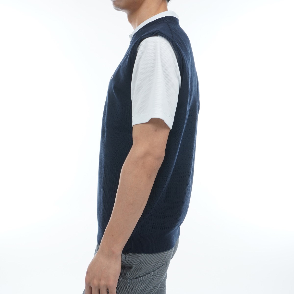 肩幅と身幅にゆとりを持たせているので、ベーシックなベストとは違うスタイリングを楽しめるアイテムです。