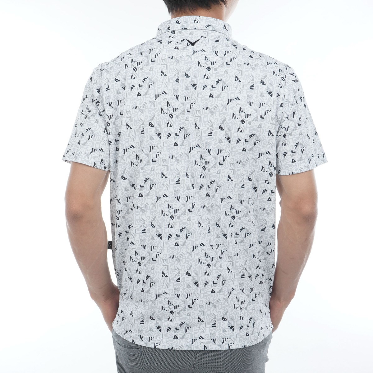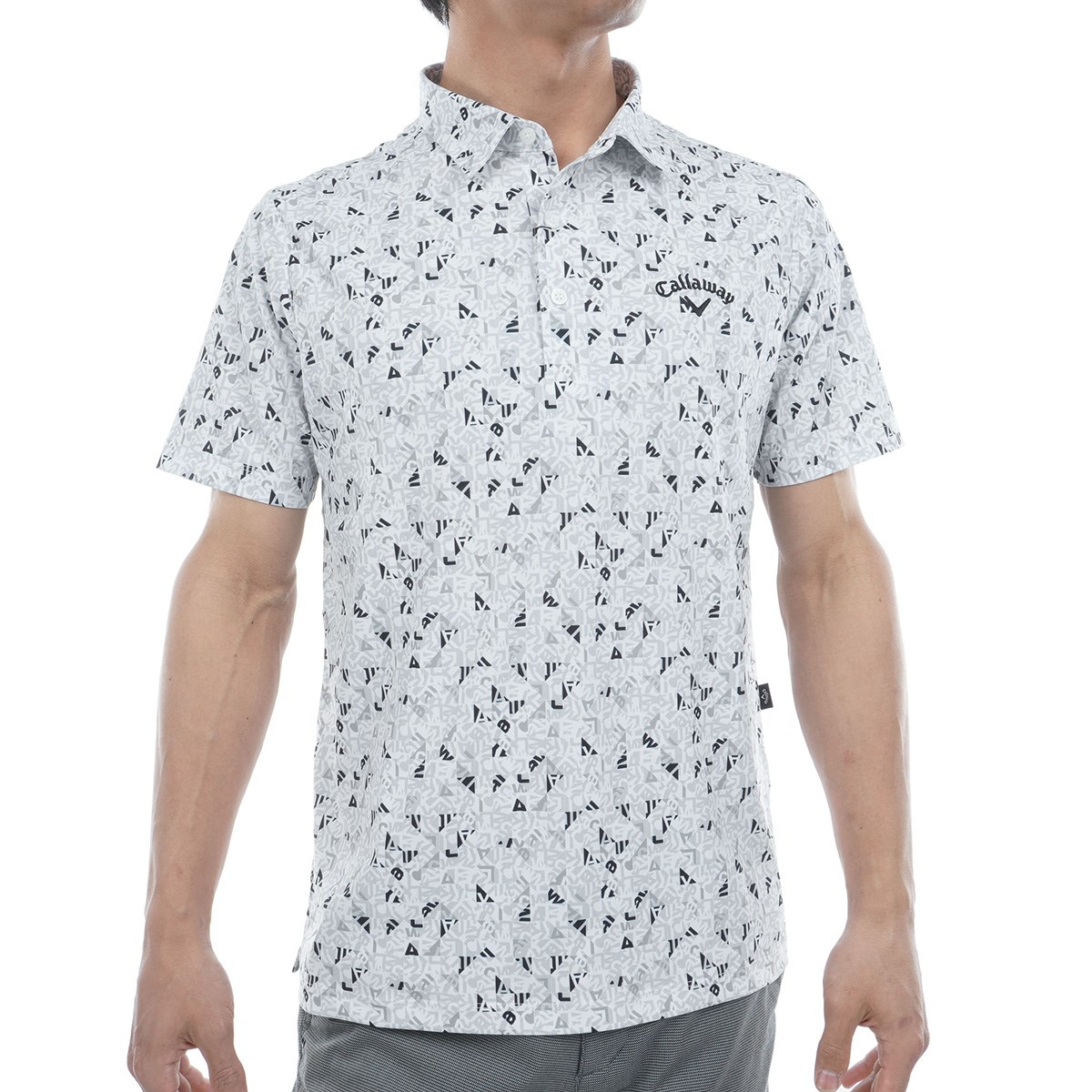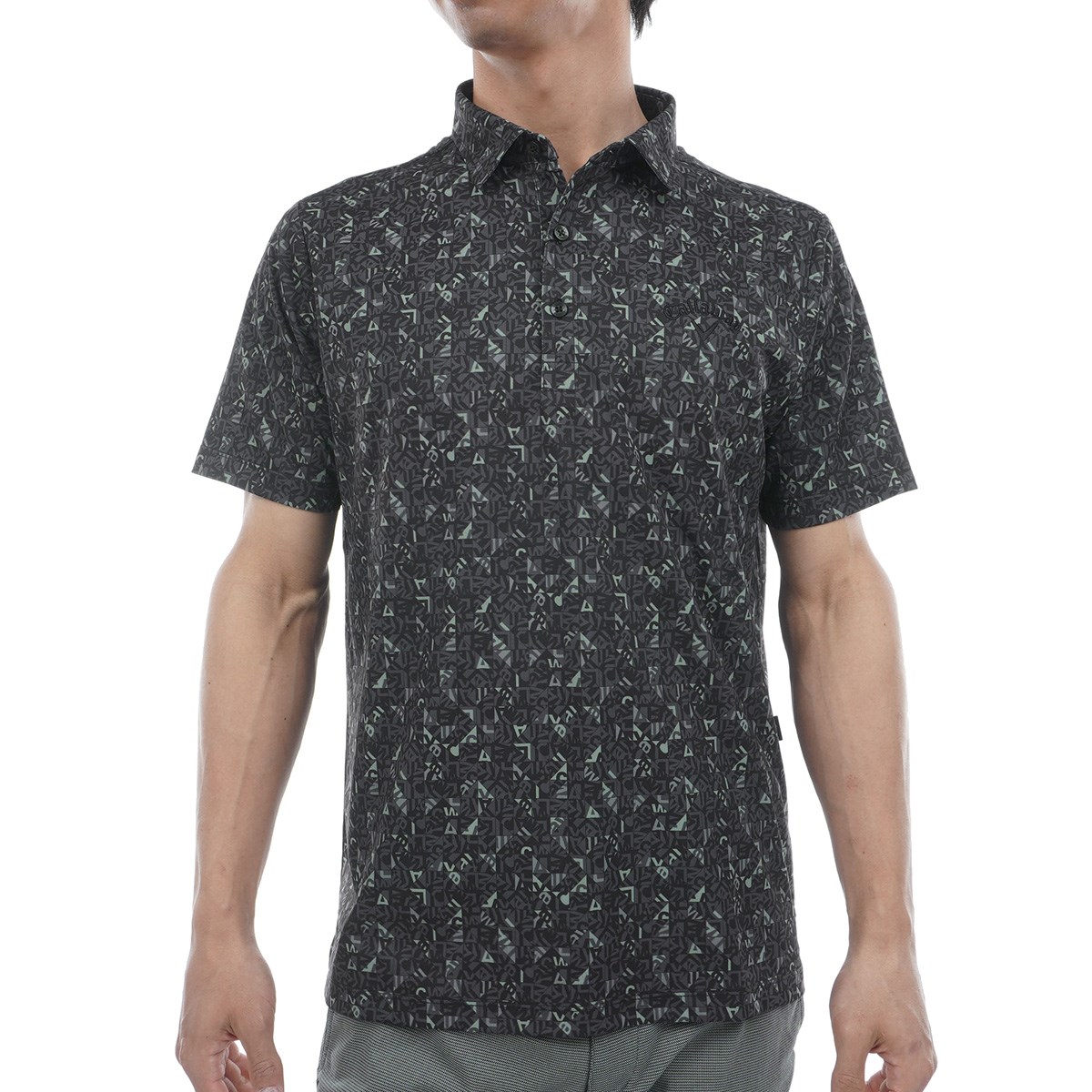 CALLAWAYロゴをタイルのような幾何学柄にアレンジされたプリント半袖ポロシャツです。