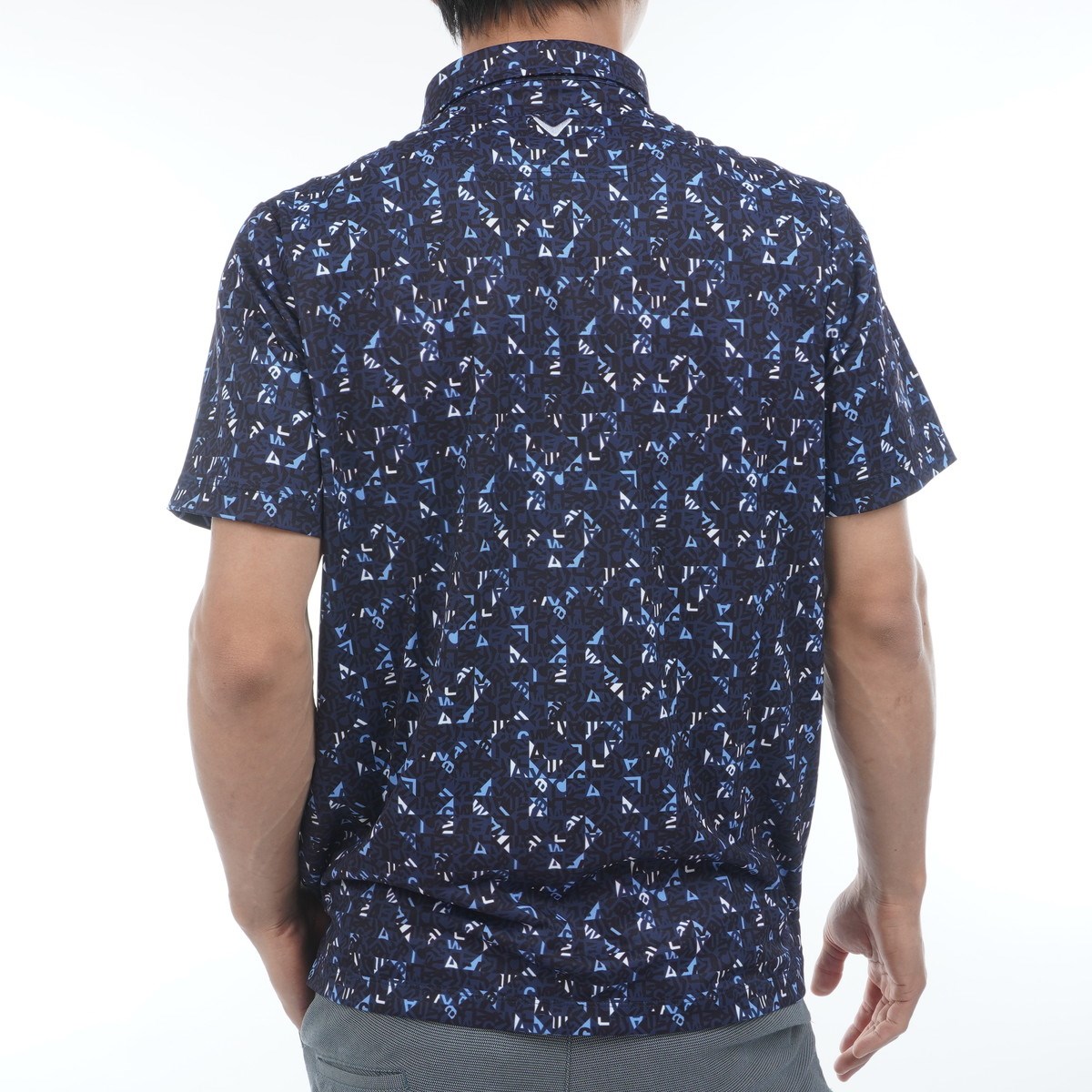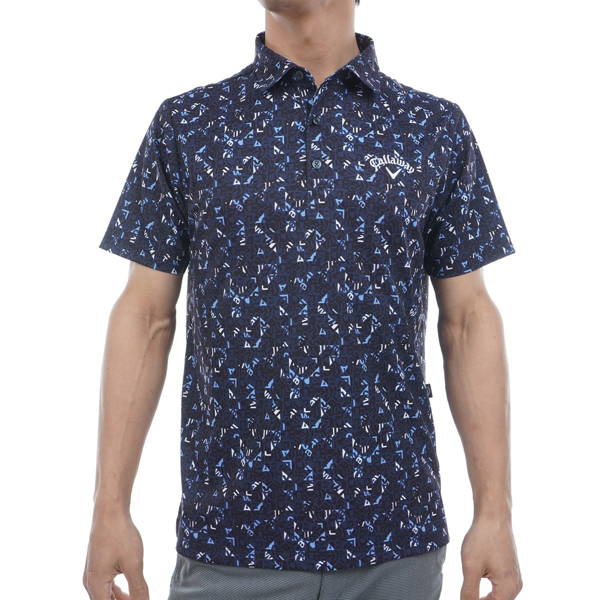 CALLAWAYロゴをタイルのような幾何学柄にアレンジされたプリント半袖ポロシャツです。