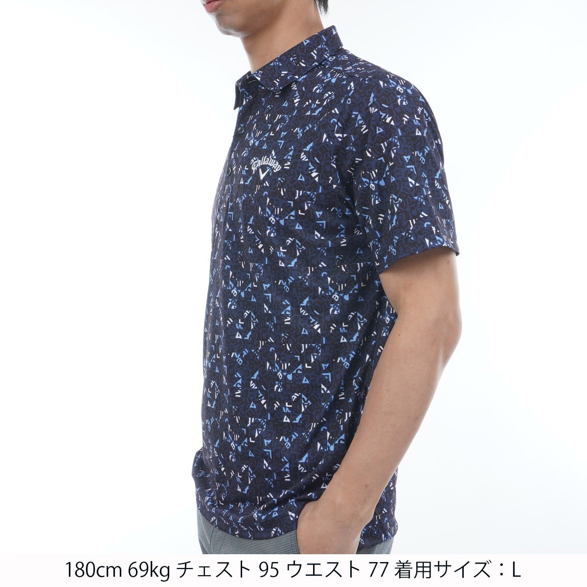 キャロウェイゴルフ Callaway Golf 幾何学ロゴプリント 鹿の子半袖ポロシャツ LL ネイビー 1120