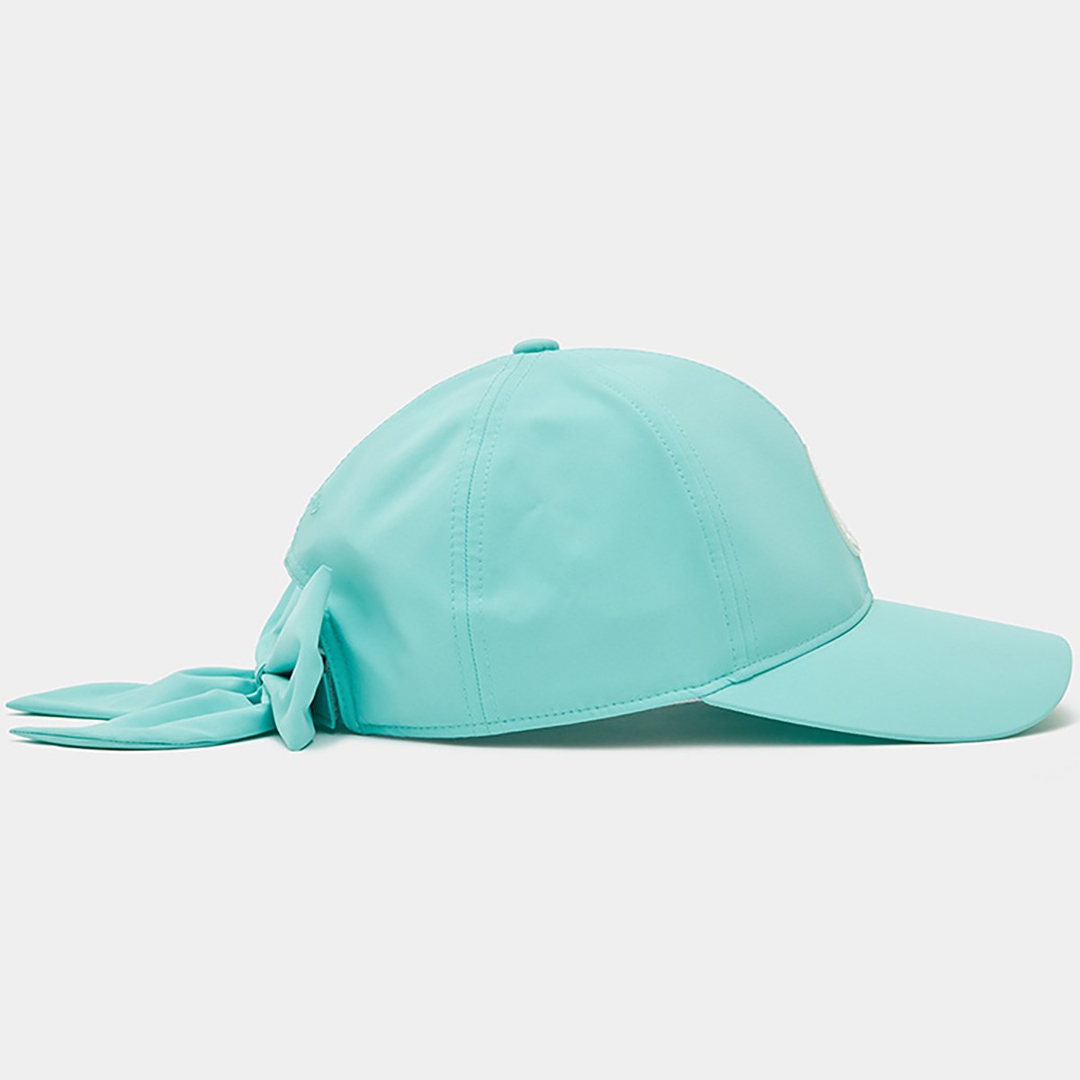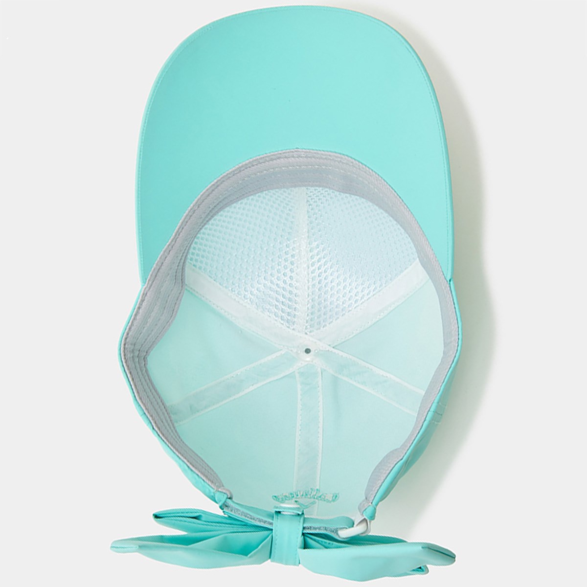 バックスタイルには取り外しが可能なリボンをあしらい、カジュアルになりがちなキャップスタイルを女性らしく演出しました。