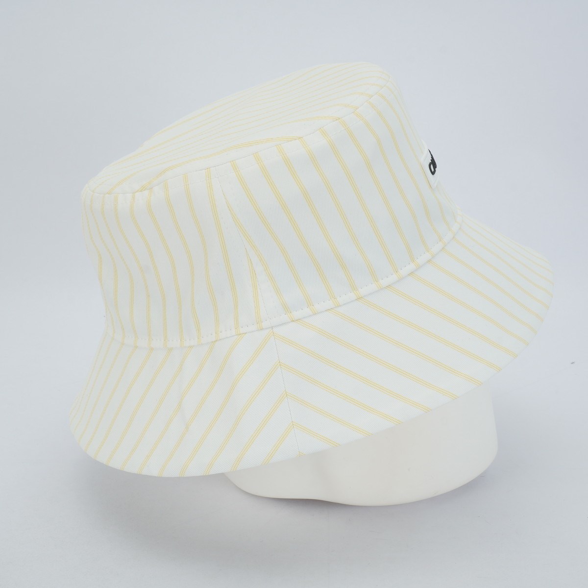 アパレルと連動した柄を用いたストライプ柄ハット。