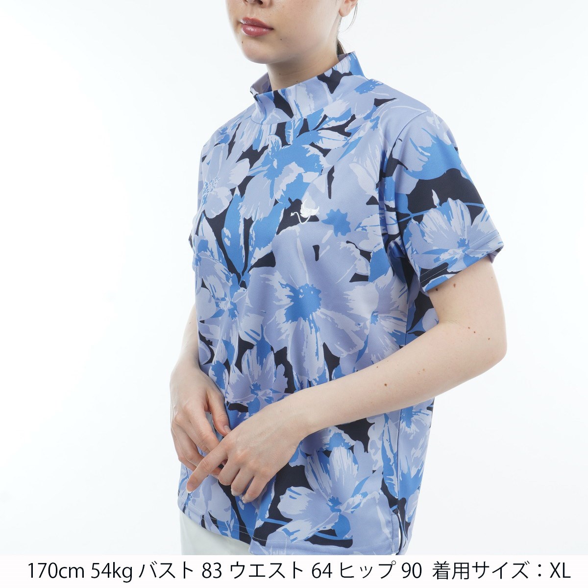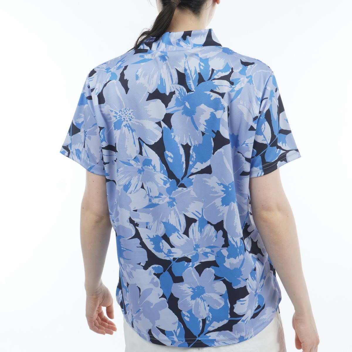 クランク Clunk 花柄グラフィック モックネック半袖シャツ L ネイビー レディス
