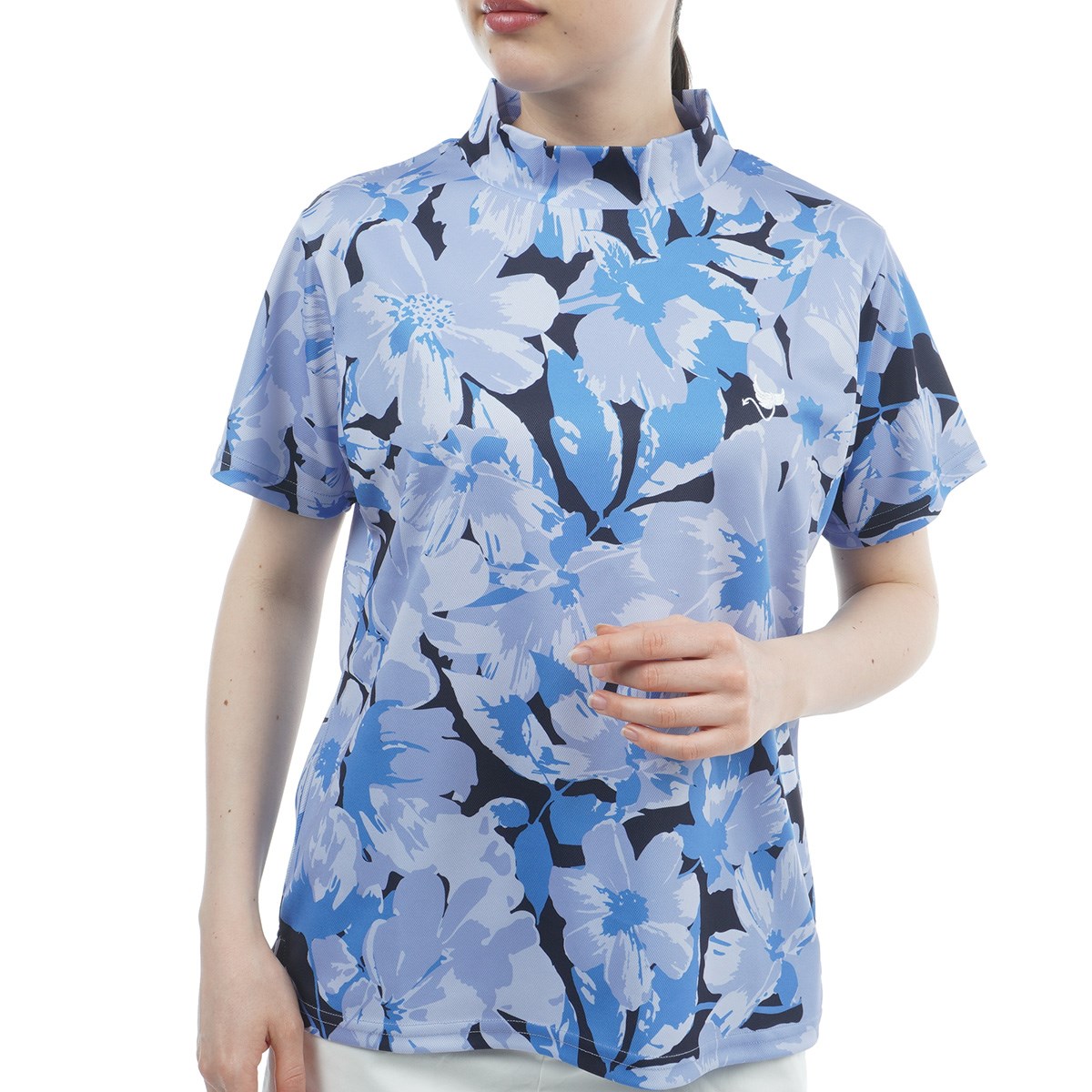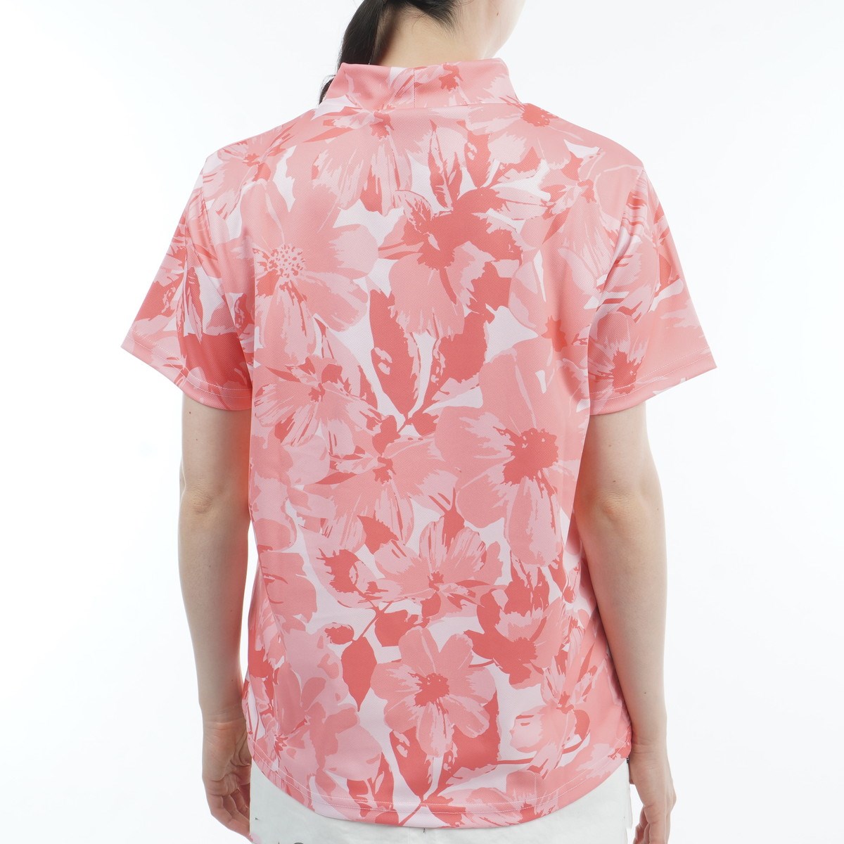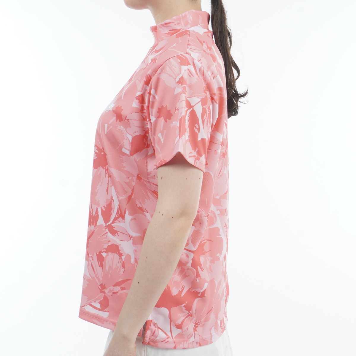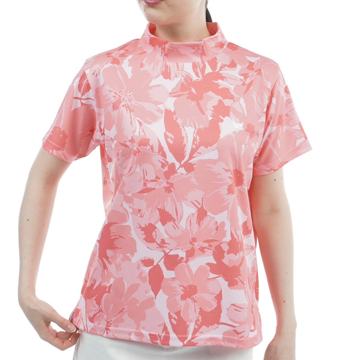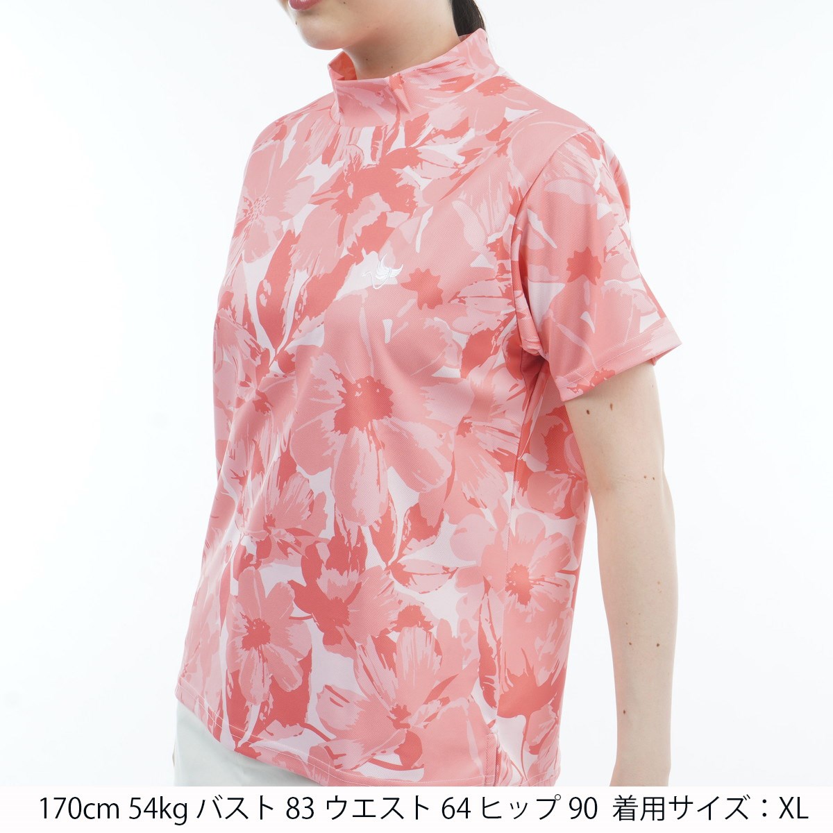 クランク Clunk 花柄グラフィック モックネック半袖シャツ L ピンク レディス