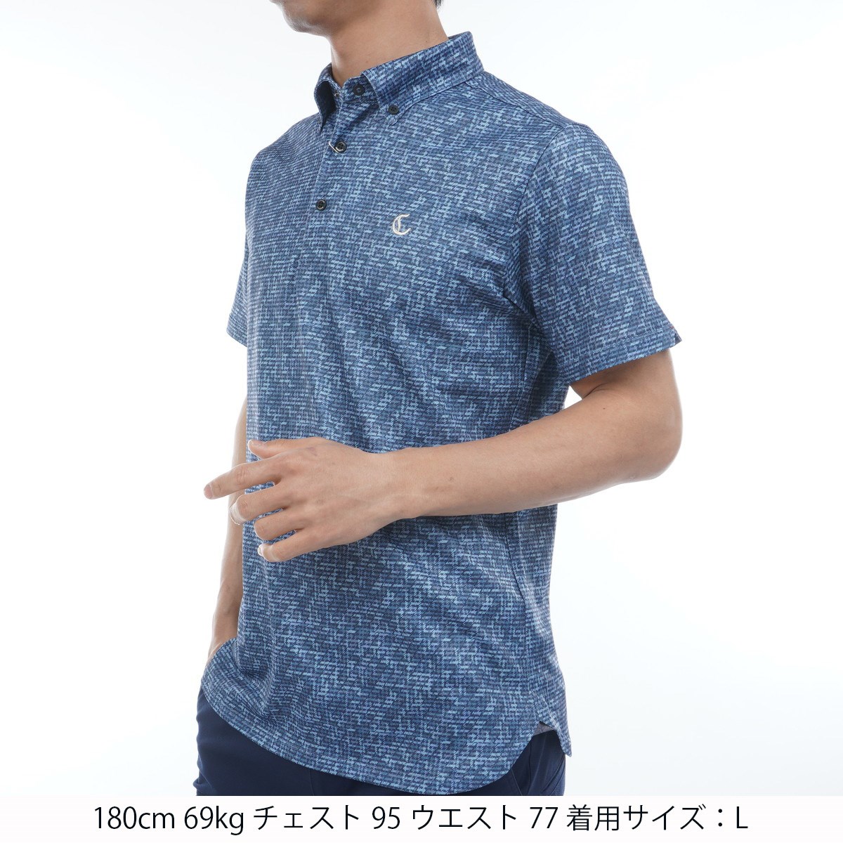 トーンを合わせた総柄デザインでコーディネートしやすく、デイリーに合わせて頂ける汎用性の高い半袖ポロシャツです。