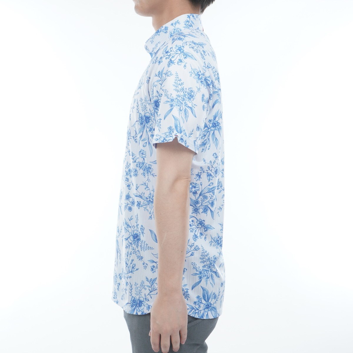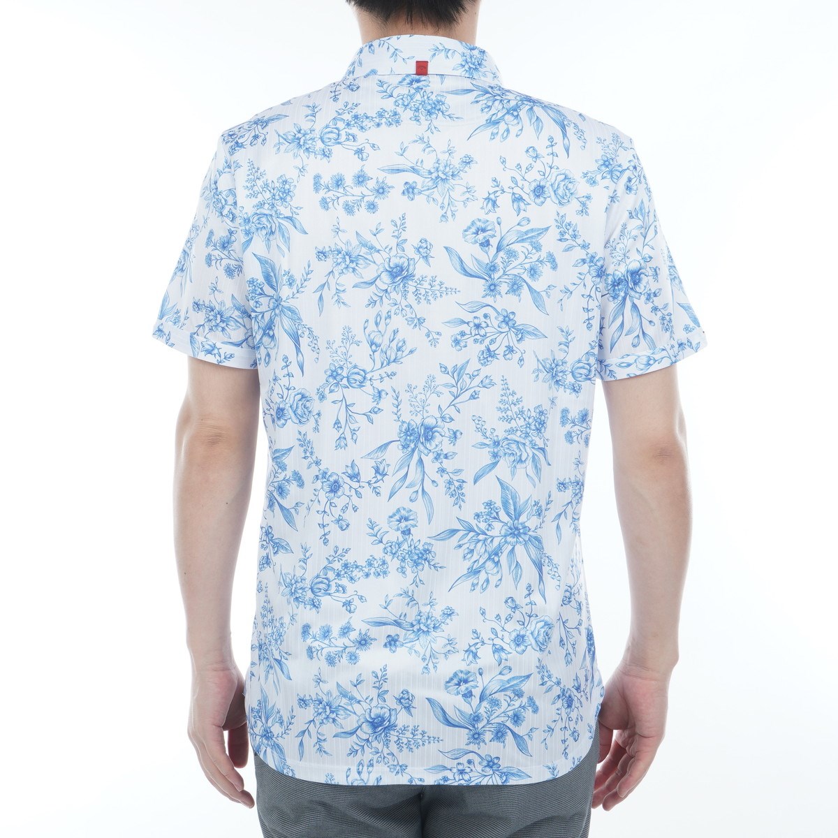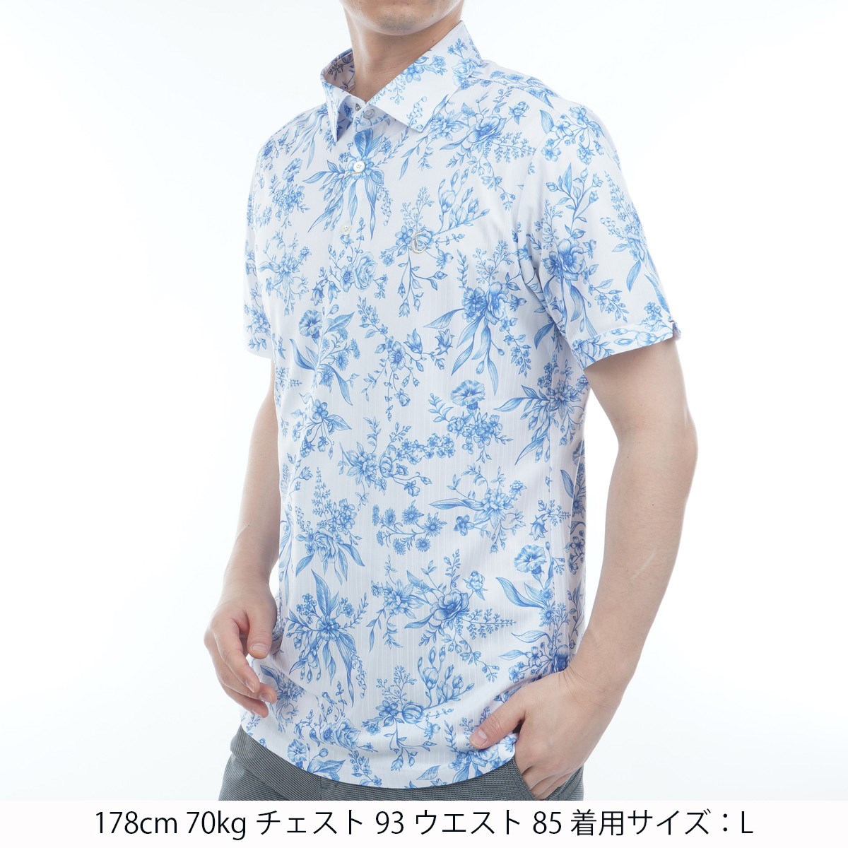 キャロウェイゴルフ CALLAWAY RED LABEL フラワープリントストライプジャカード半袖ポロシャツ M ブルー 1110
