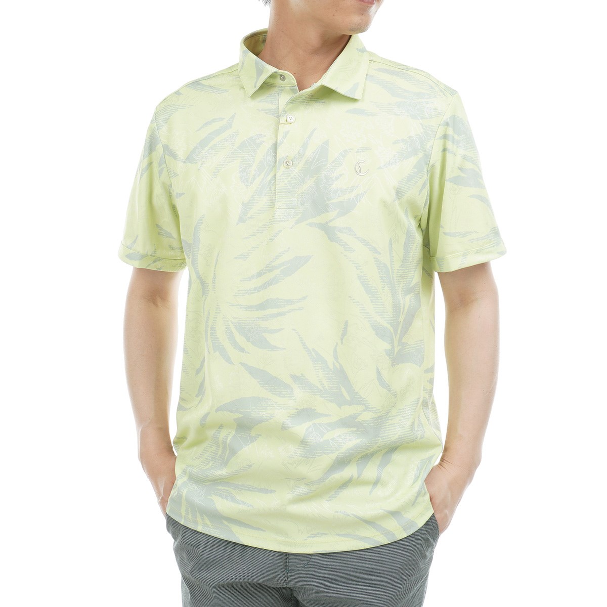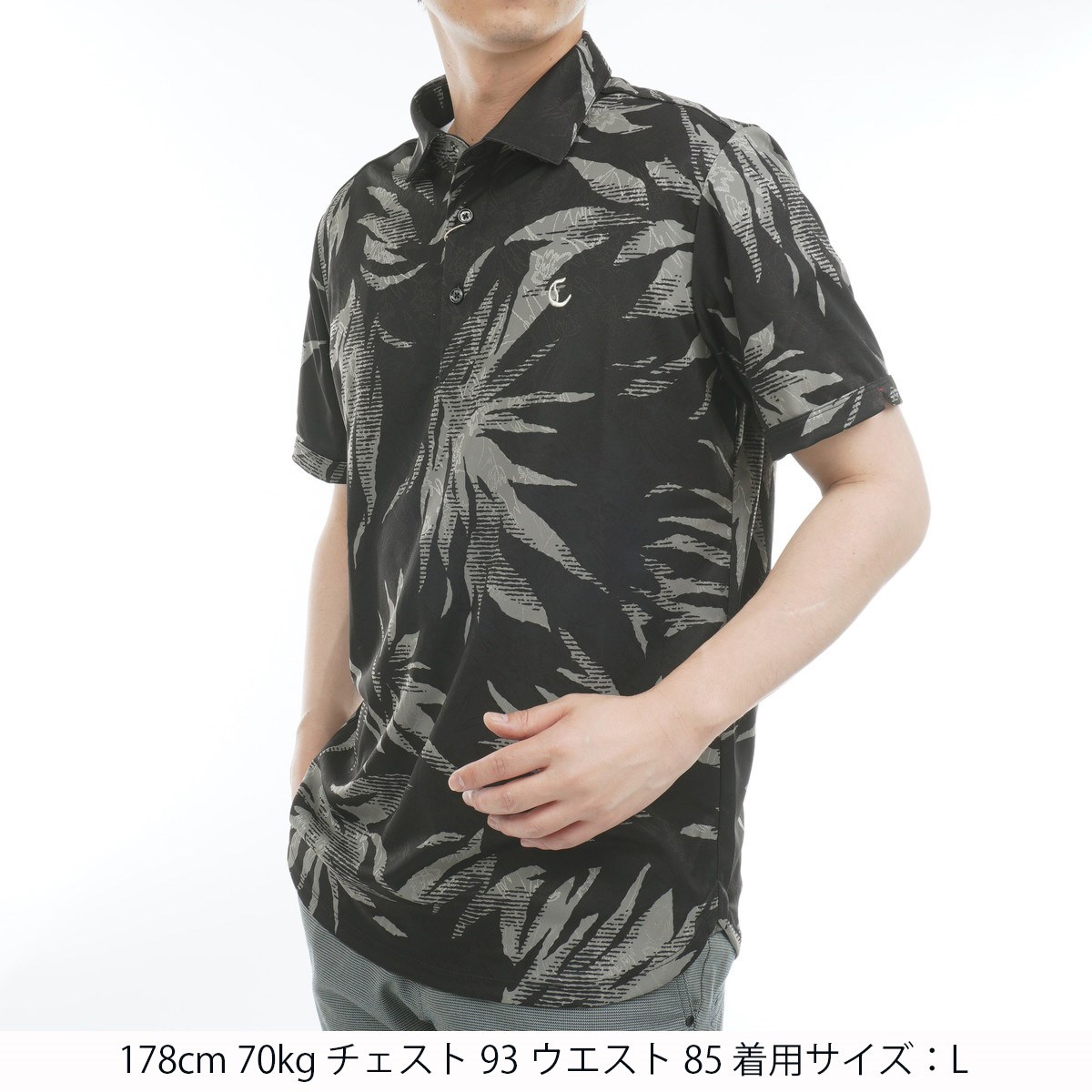 角度によって見え方が変化するボタニカルジャカード生地で仕立てた高級感のあるポロシャツ。