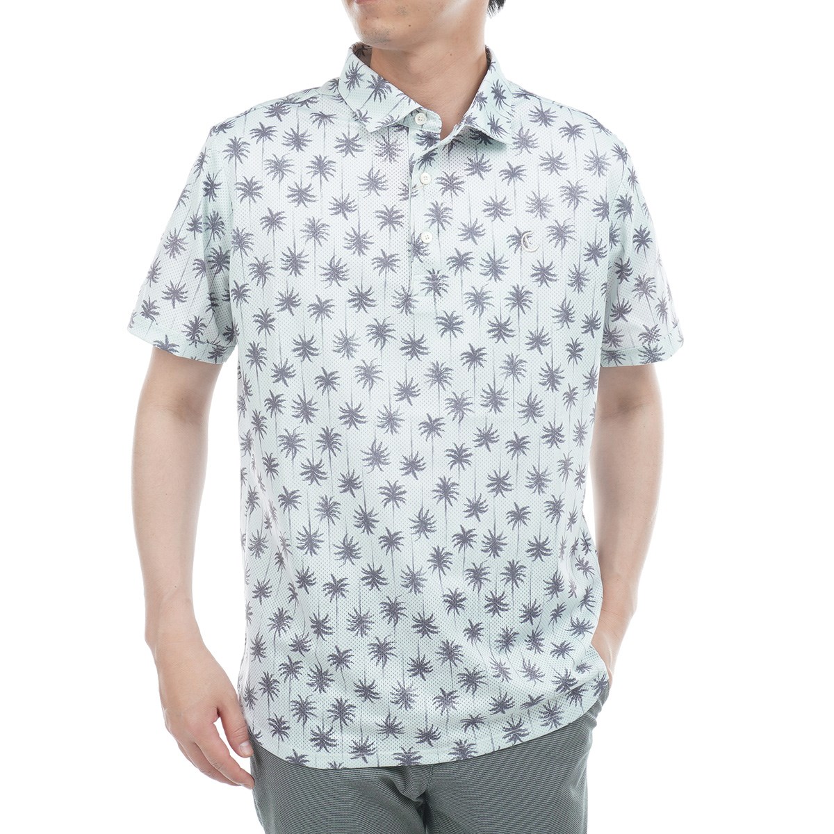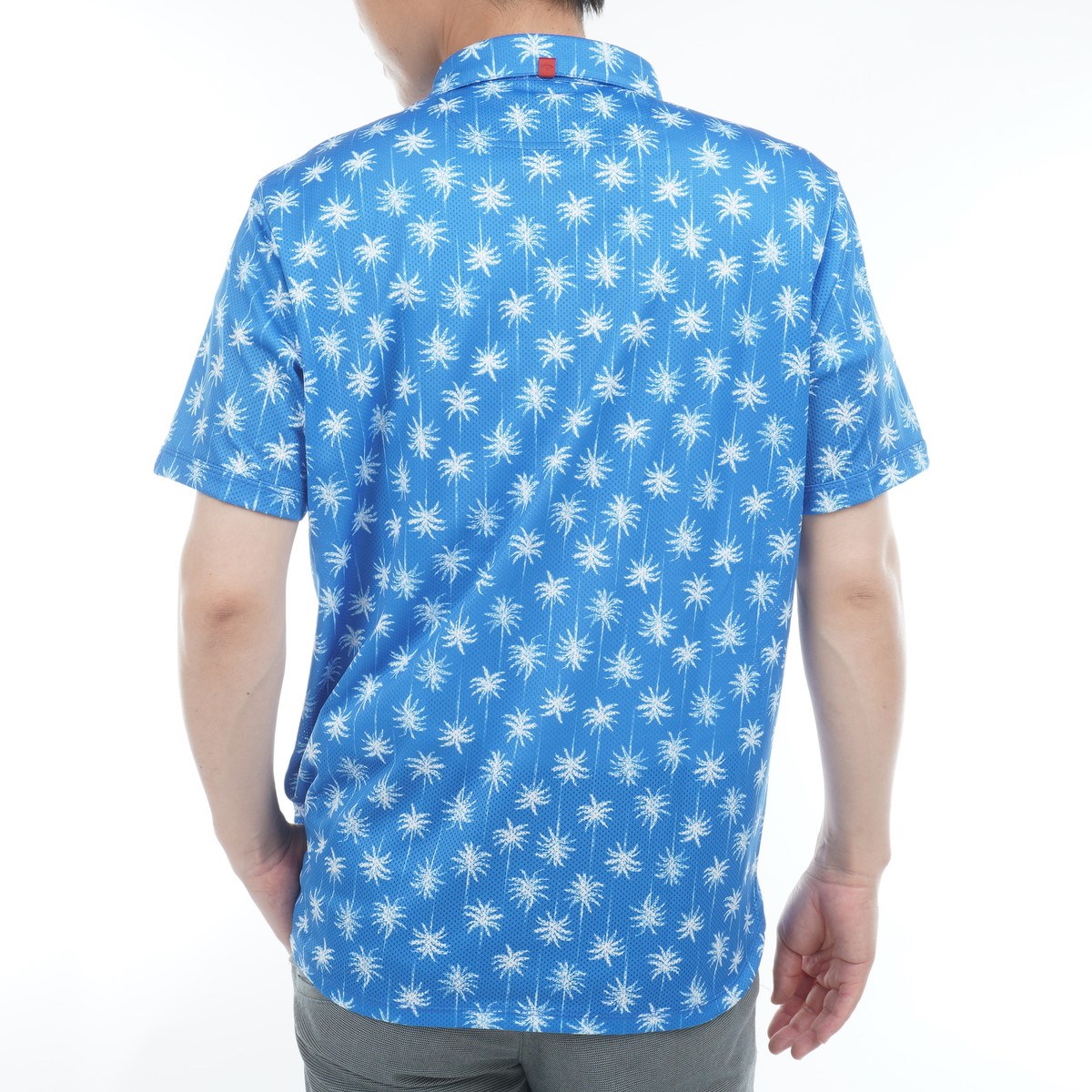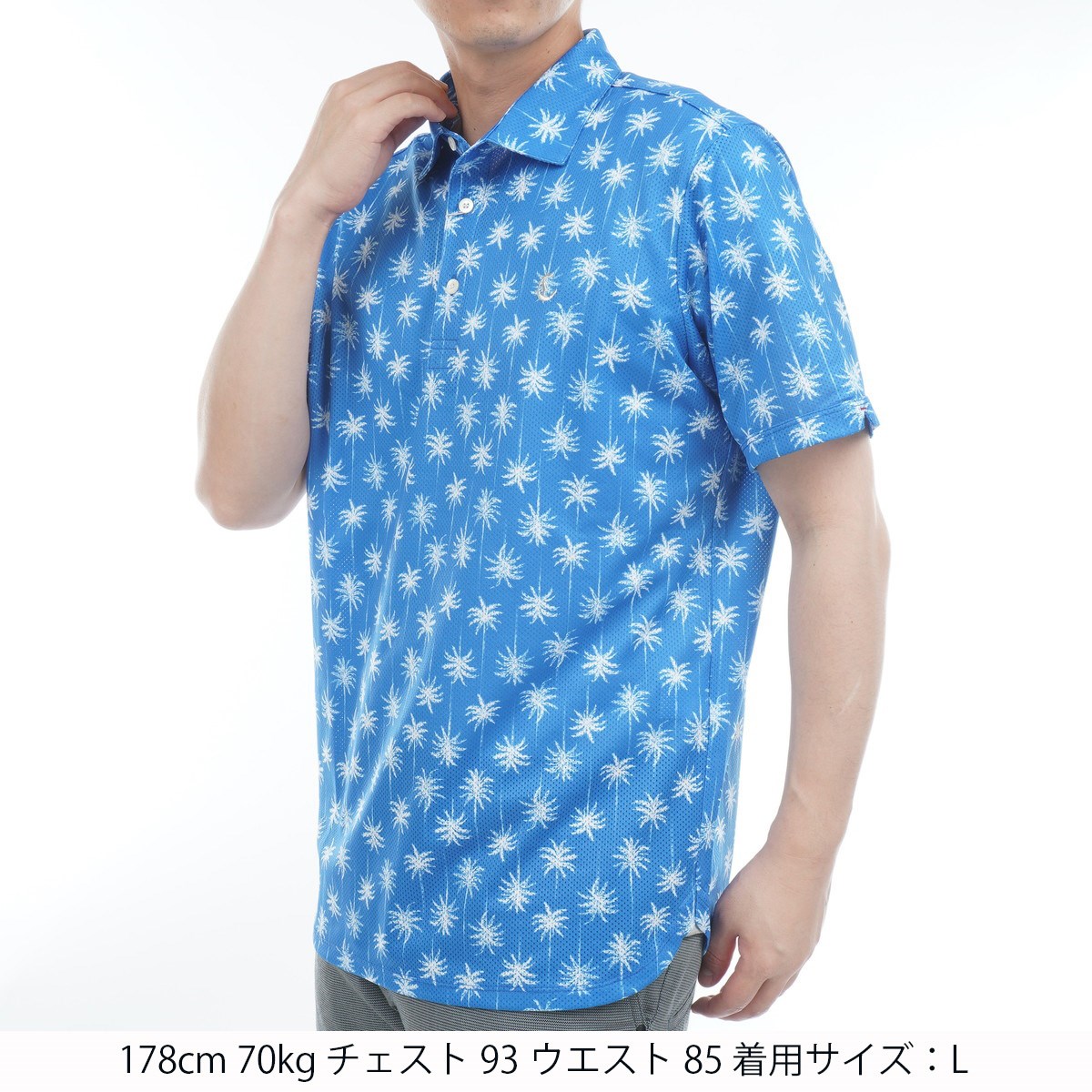 キャロウェイゴルフ CALLAWAY RED LABEL かざあなPalm treeプリントメッシュ鹿の子半袖ポロシャツ L ブルー 1110