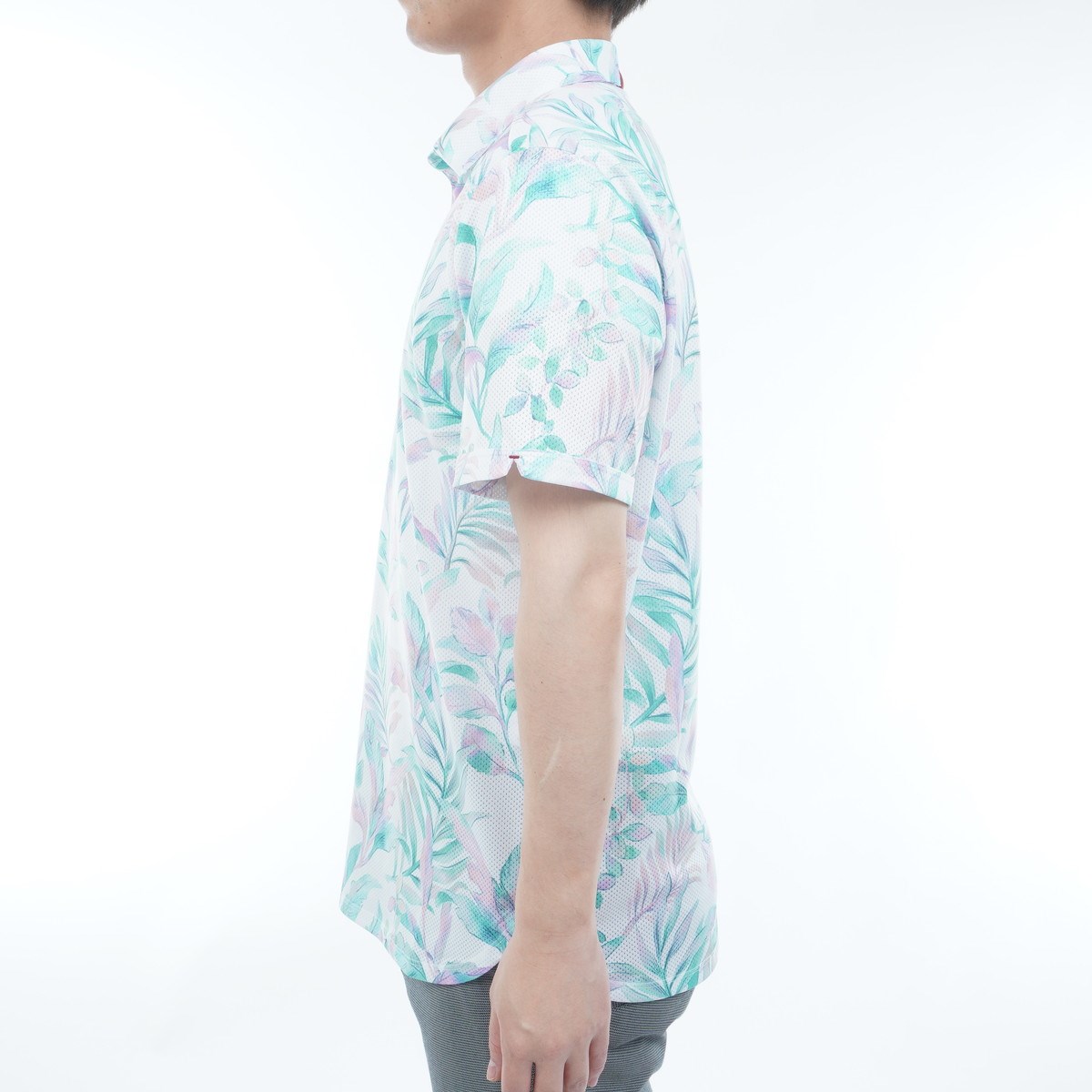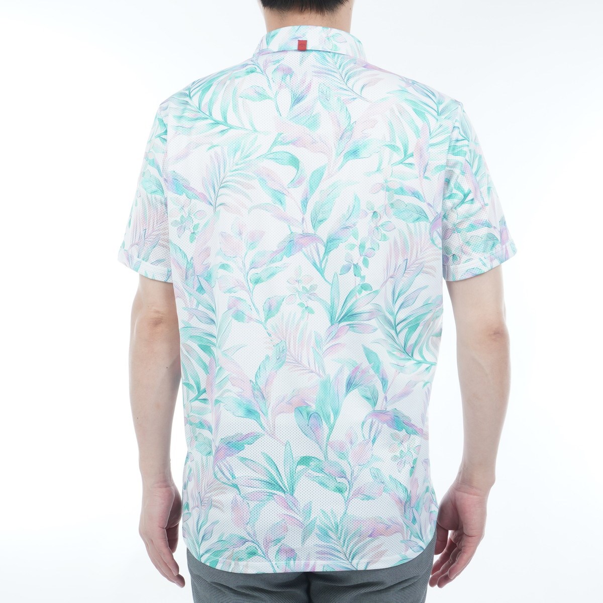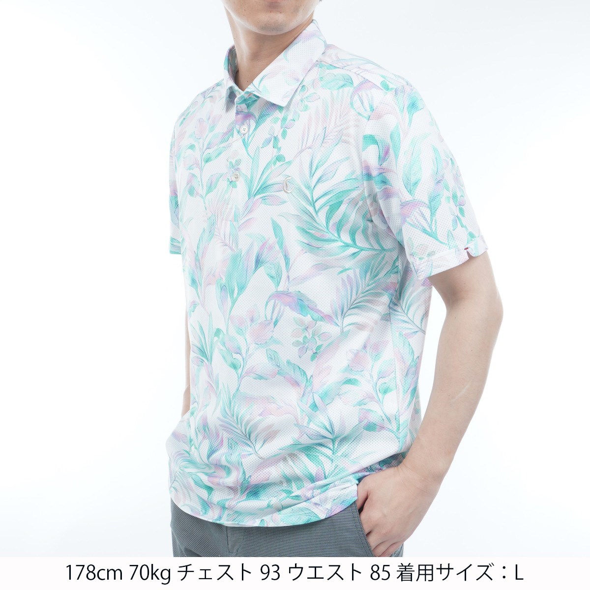 フラワーとリーフを組み合わせたボタニカルプリントが清涼感溢れるデザインポロシャツ。