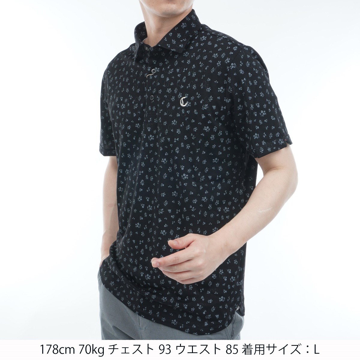 キャロウェイゴルフ CALLAWAY RED LABEL ストレッチ スモールフラワープリントジャガード半袖ポロシャツ M ブラック 1010