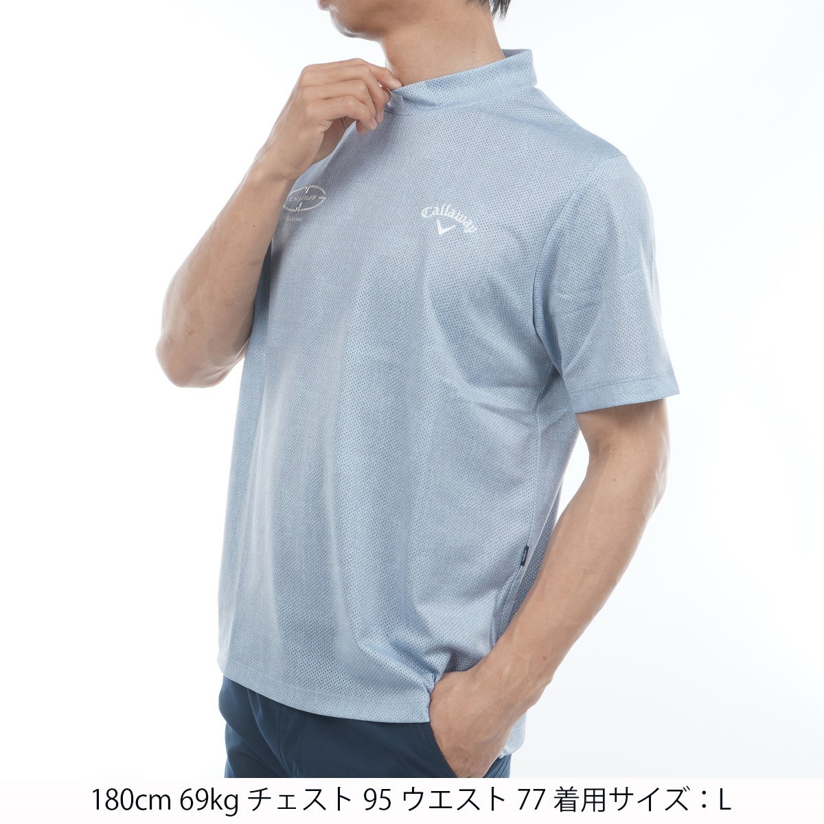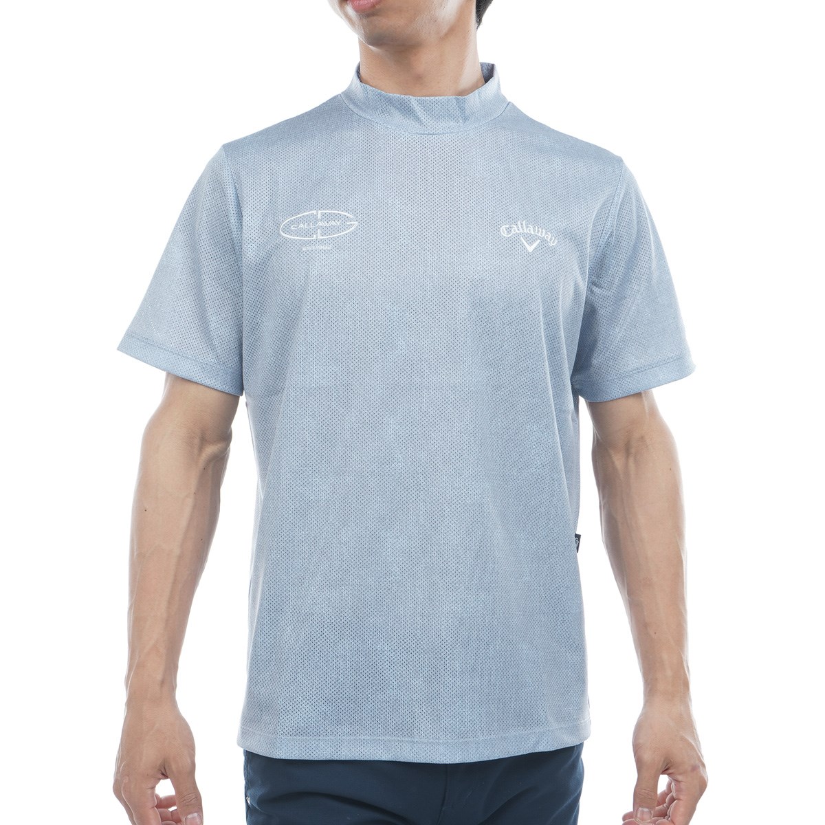 キャロウェイゴルフ Callaway Golf かざあなメッシュ メランジプリント モックネック半袖シャツ LL ブルー 1112