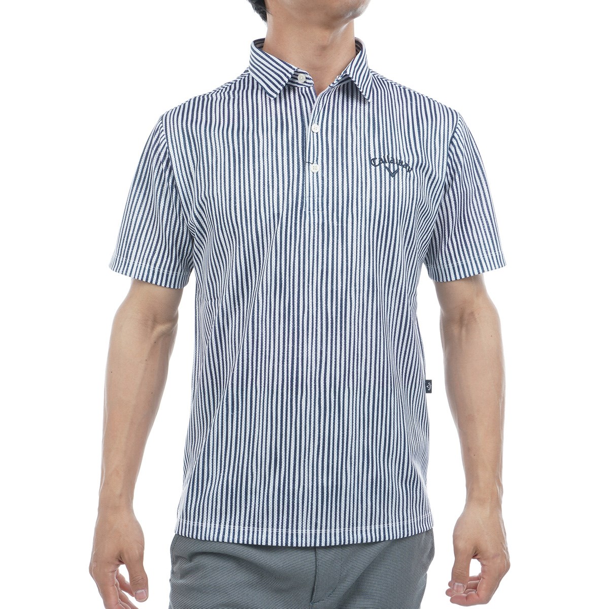 キャロウェイゴルフ Callaway Golf かざあなメッシュ ストライププリント半袖ポロシャツ 3L ホワイト 1030