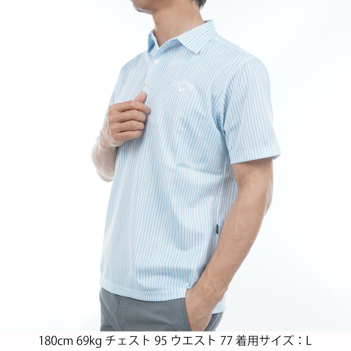 キャロウェイゴルフ Callaway Golf かざあなメッシュ ストライププリント半袖ポロシャツ L ブルー 1112