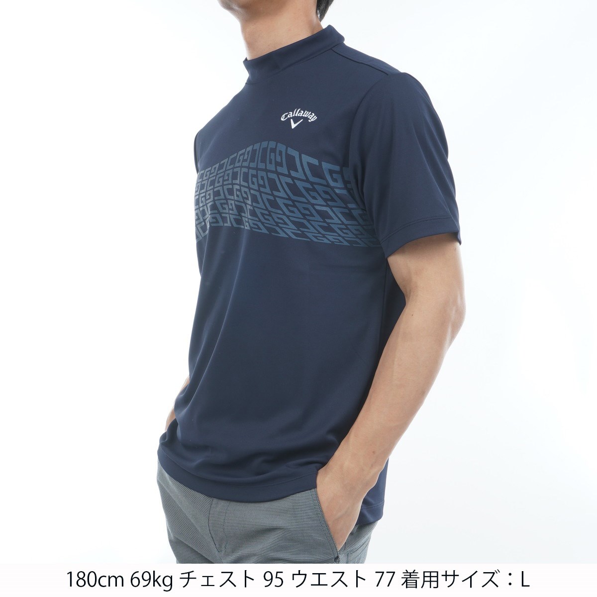キャロウェイゴルフ Callaway Golf -3℃裏クール鹿の子モックネック半袖シャツ L ネイビー 1120