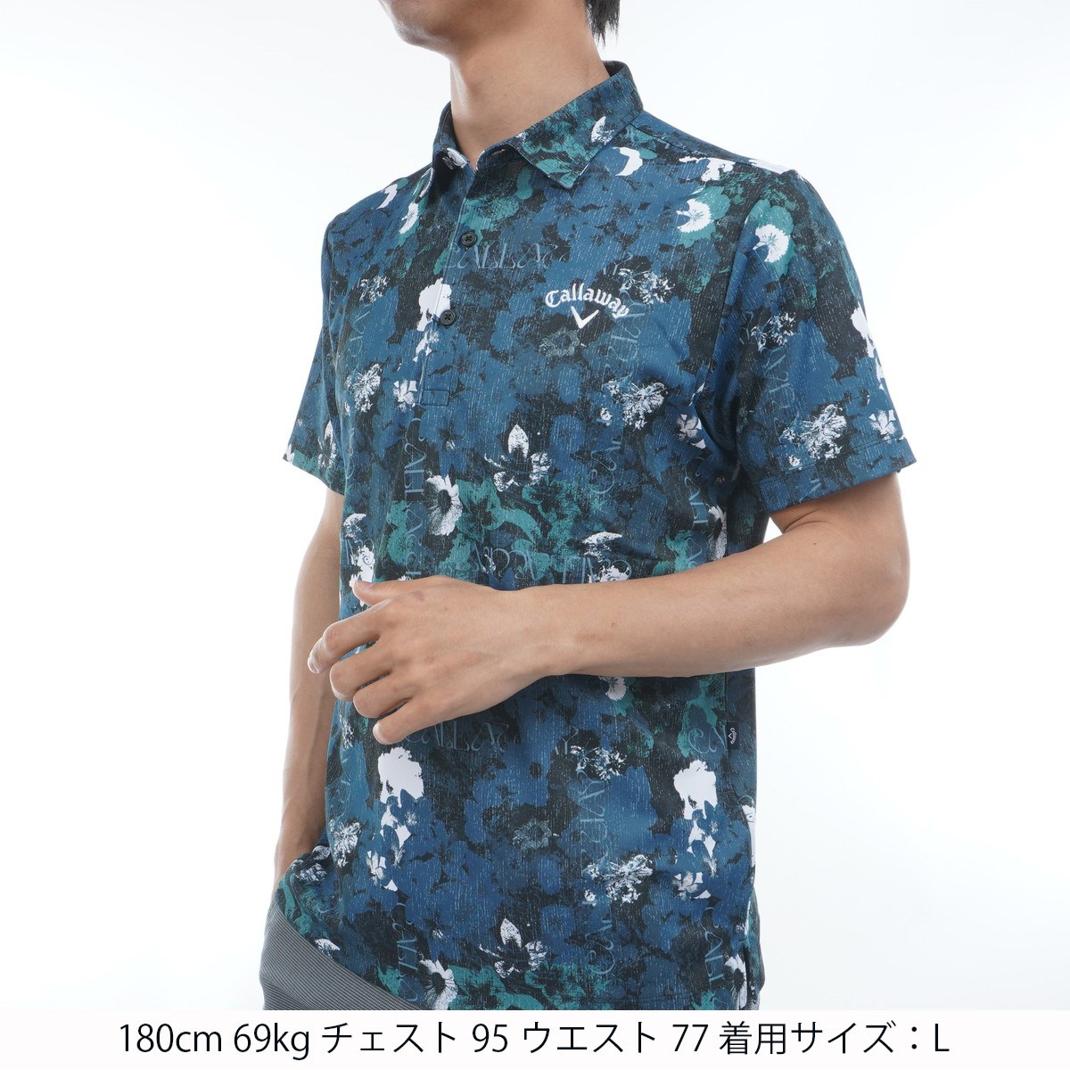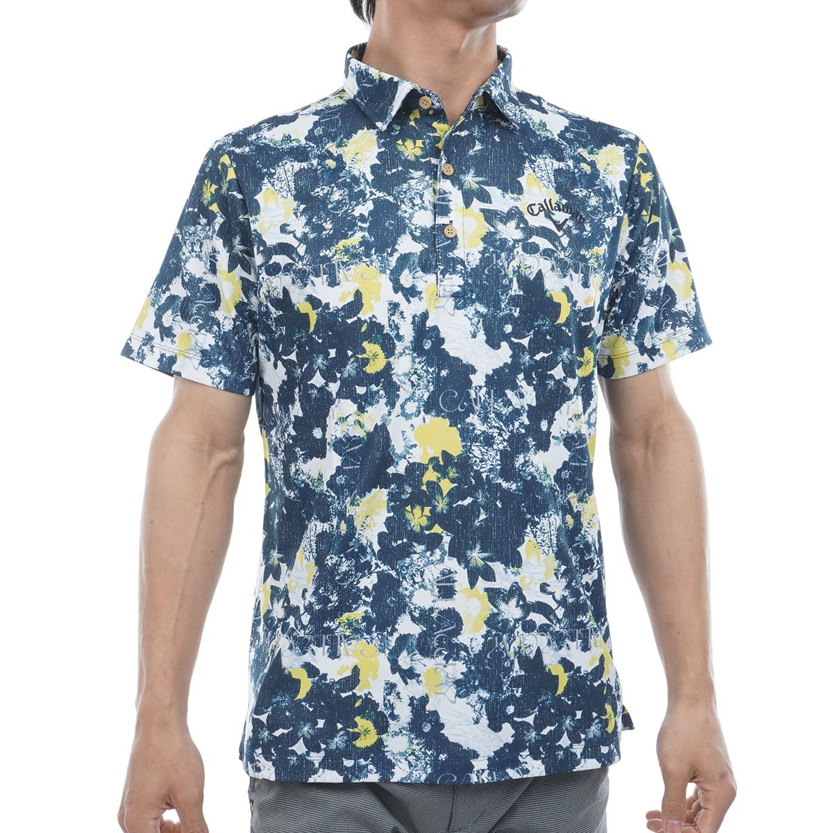 キャロウェイゴルフ Callaway Golf -3℃裏クールフラワープリント 鹿の子半袖ポロシャツ LL ネイビー 1120