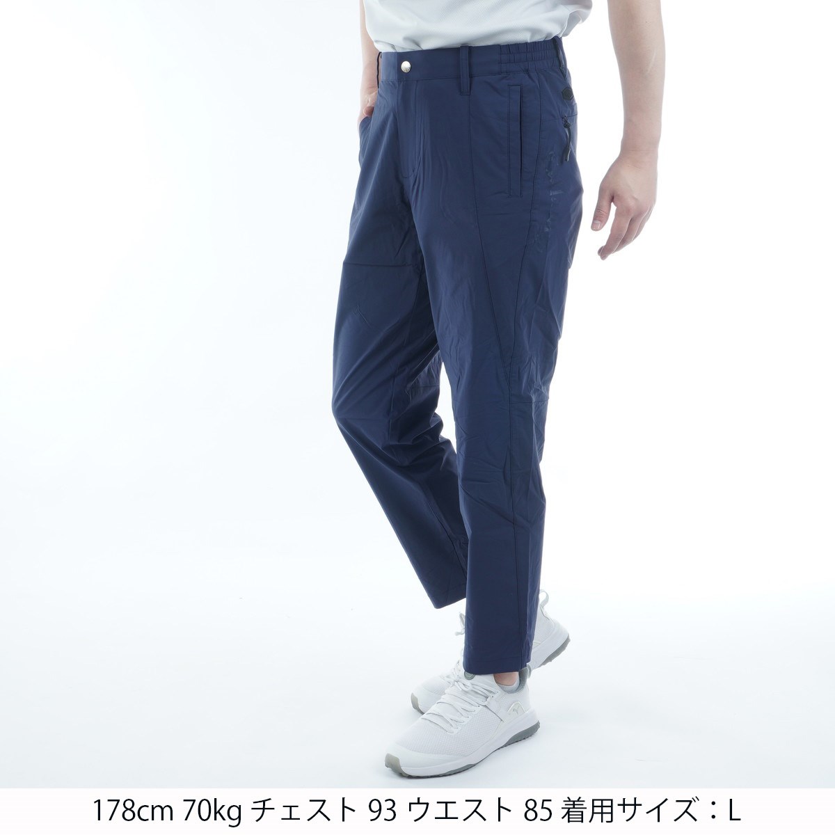 ヒップや膝にゆとりを持たせてますが裾巾をややタイトしているので、今の気分にあったスッキリとしたゴルフパンツに仕上げています。