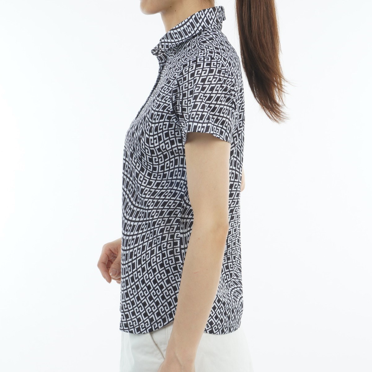 配列したCGロゴにウェーブを効かせた柄をプリントし、柄をいかしたシンプルなシャツに仕上げました。