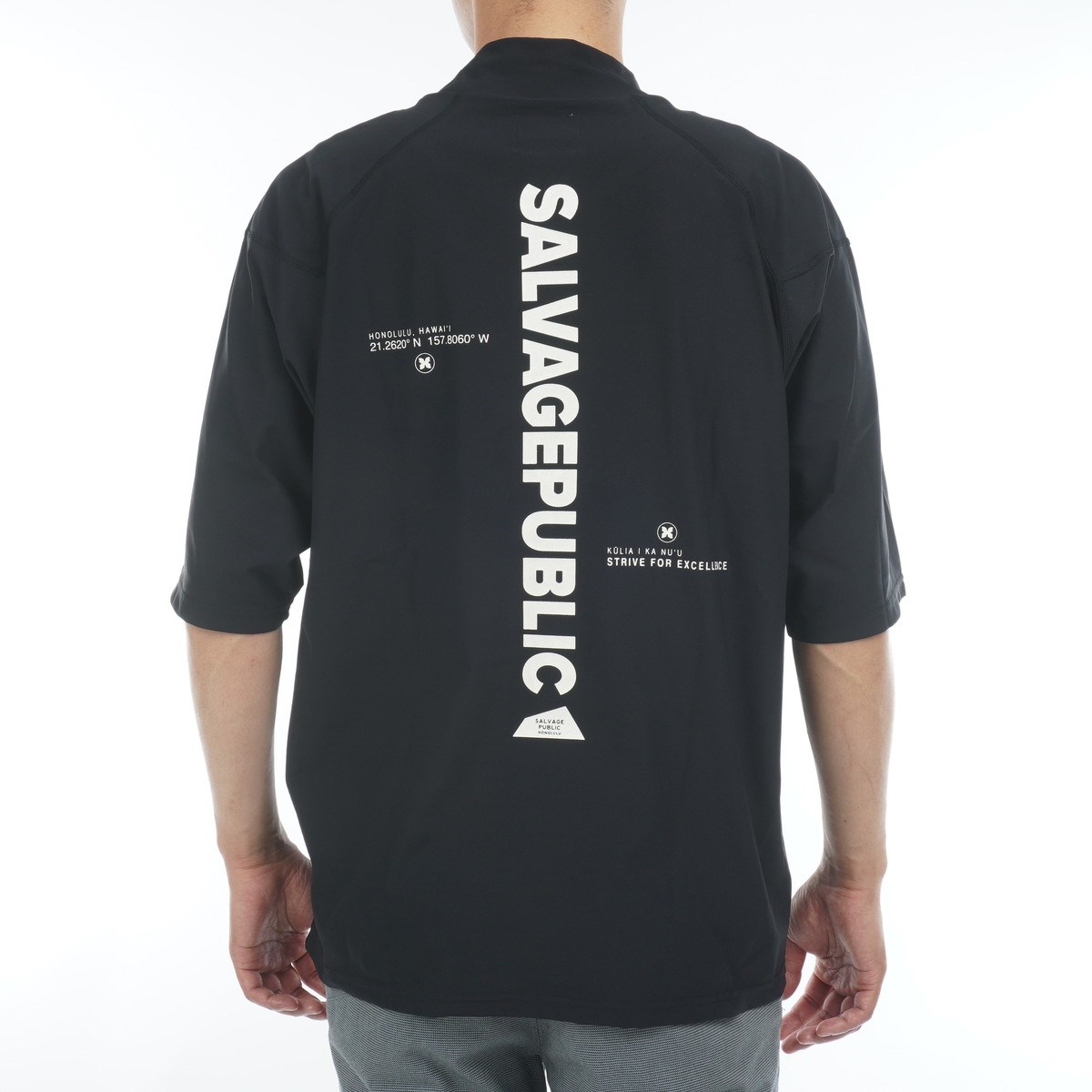 サルベージ パブリック コレパ SALVAGE PUBLIC Kolepa ストレッチ サーフモックネック5分袖シャツ L ブラック