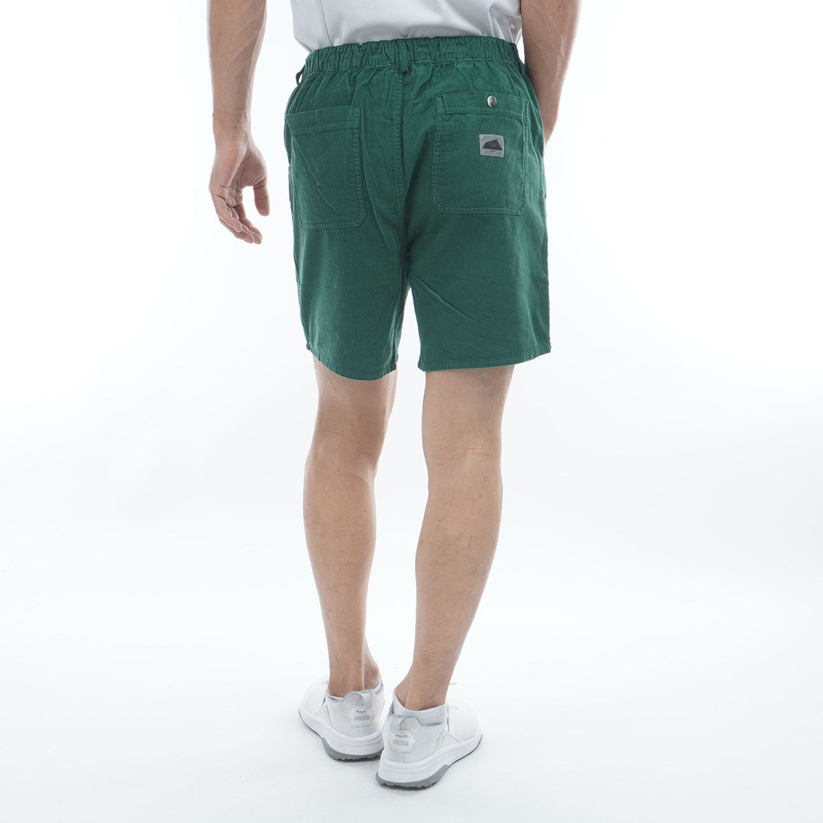 バックポケットは右側のみスナップボタンを付けてスコアカードなどを収め、左バックポケットにはグローブを収める事を想定した仕様にしている。