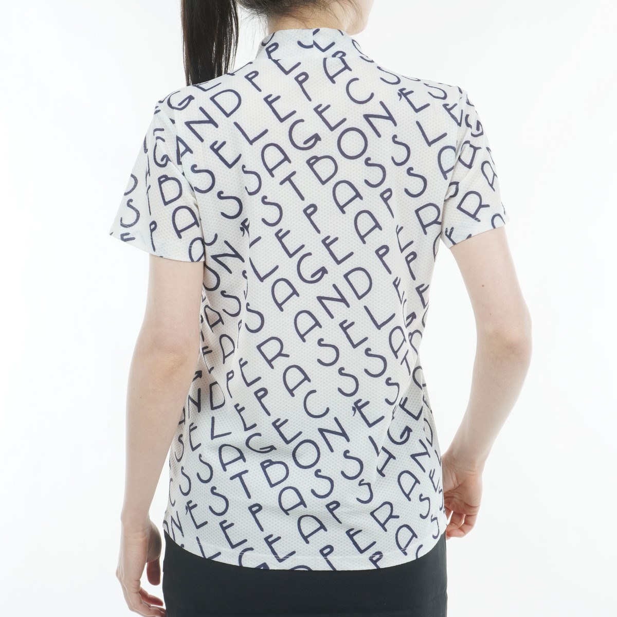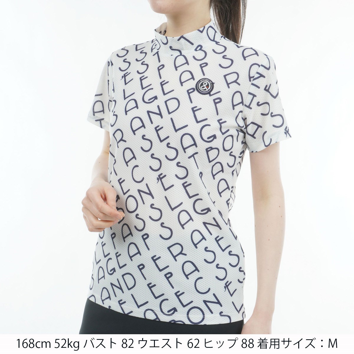 アンパスィ and per se ストレッチ SDエアフロー モックネック半袖シャツ M ホワイト/ネイビー レディス